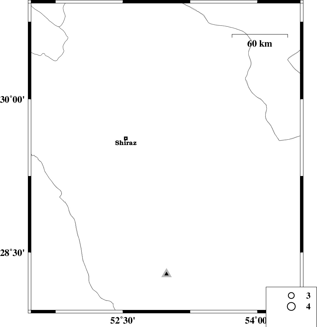 | 2025/04/04 | 03:44:19.1 | 07:14:19.1 | 29.404 | 52.746 | 12 | ML4.5 | Fars Province, 32 km South-East of Shiraz |