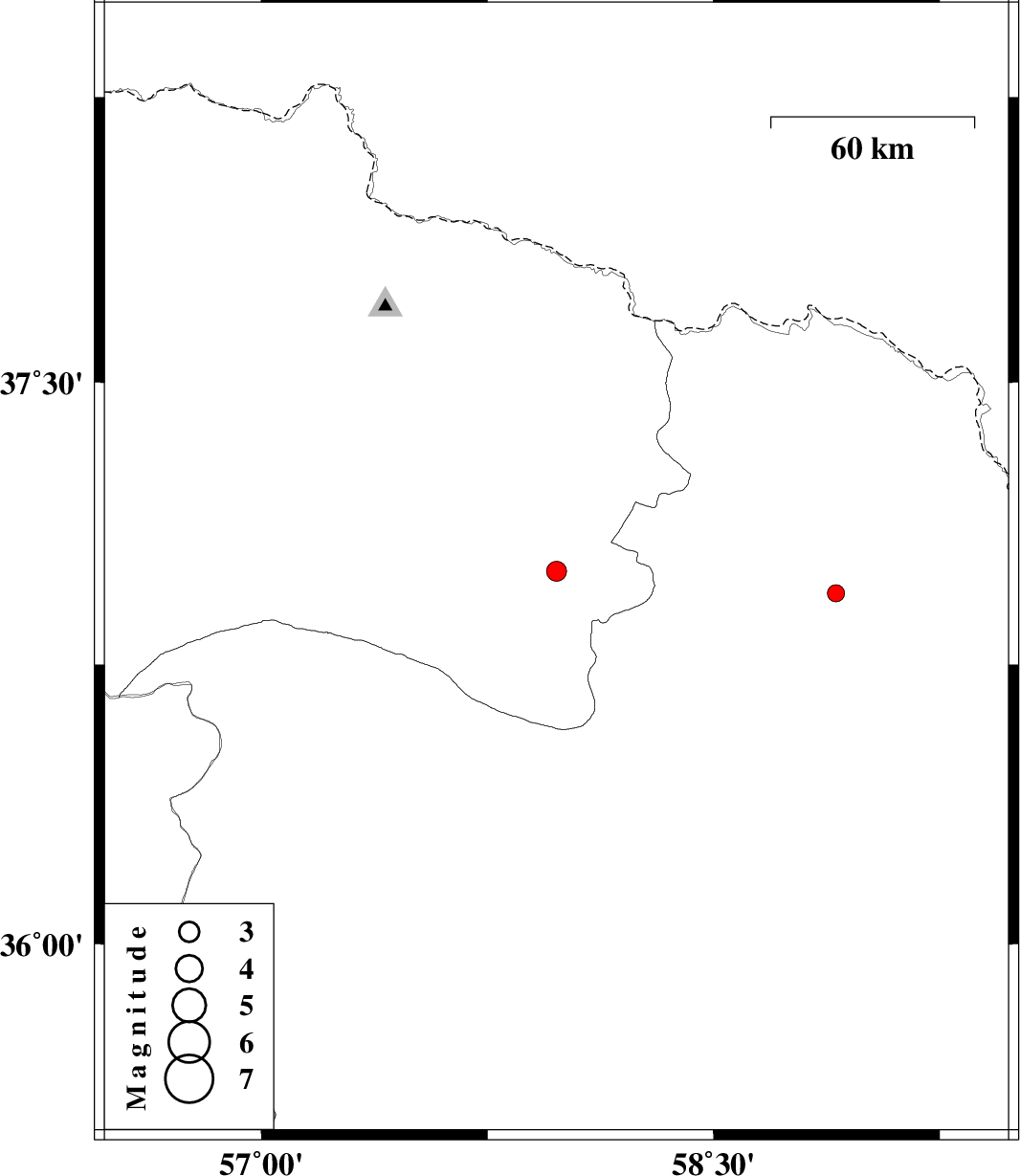 | 2025/03/25 | 03:07:32.1 | 06:37:32.1 | 36.998 | 57.979 | 12 | ML3 | Khorasan(north) Province, 43 km South of Shirvan | ||