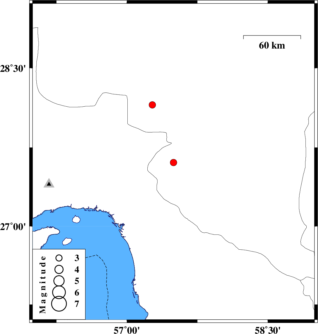 | 2025/03/01 | 17:45:26.6 | 21:15:26.6 | 28.152 | 57.271 | 12 | ML3.2 | Kerman Province, 47 km North-West of Kahnuj |