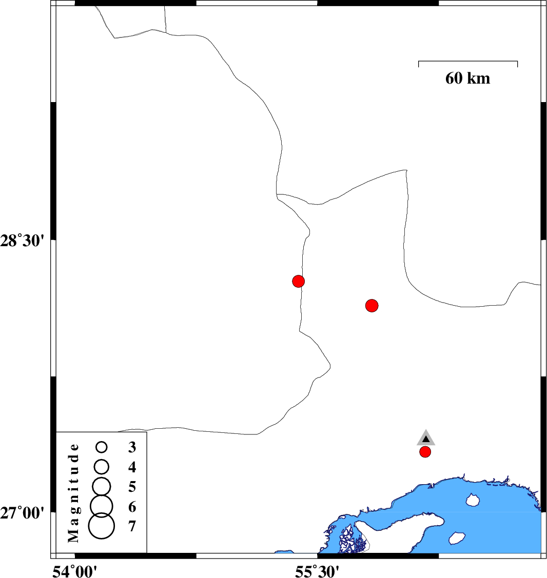 | 2025/04/12 | 00:23:21.6 | 03:53:21.6 | 28.138 | 55.837 | 12 | ML3.5 | Hormozgan Province, 20 km South of Hajiabad |