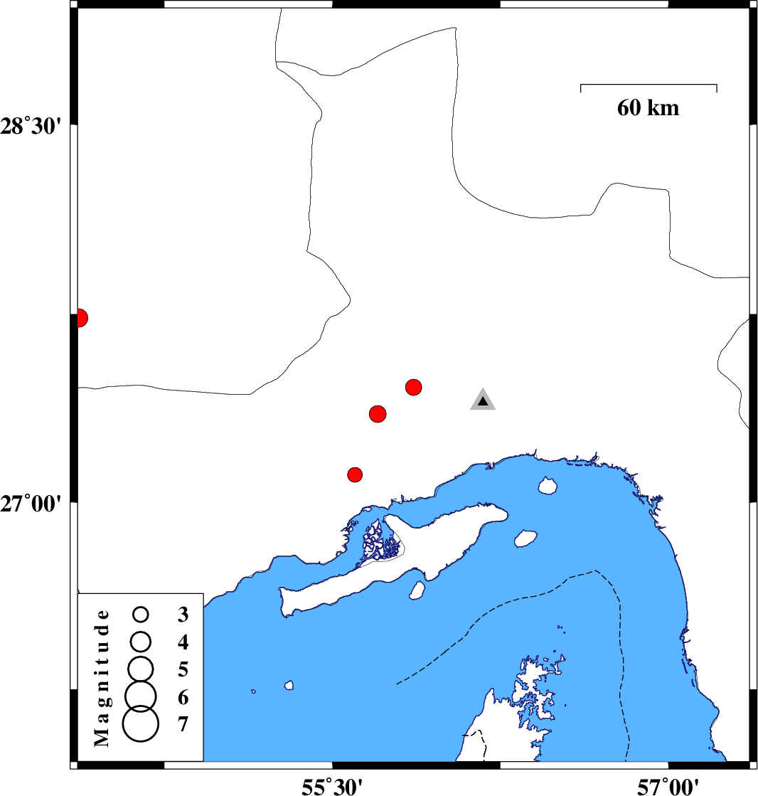 | 2025/05/12 | 02:38:55.7 | 06:08:55.7 | 27.11 | 55.601 | 12 | ML3 | Hormozgan Province, 68 km -West of Bandar-e abbas |