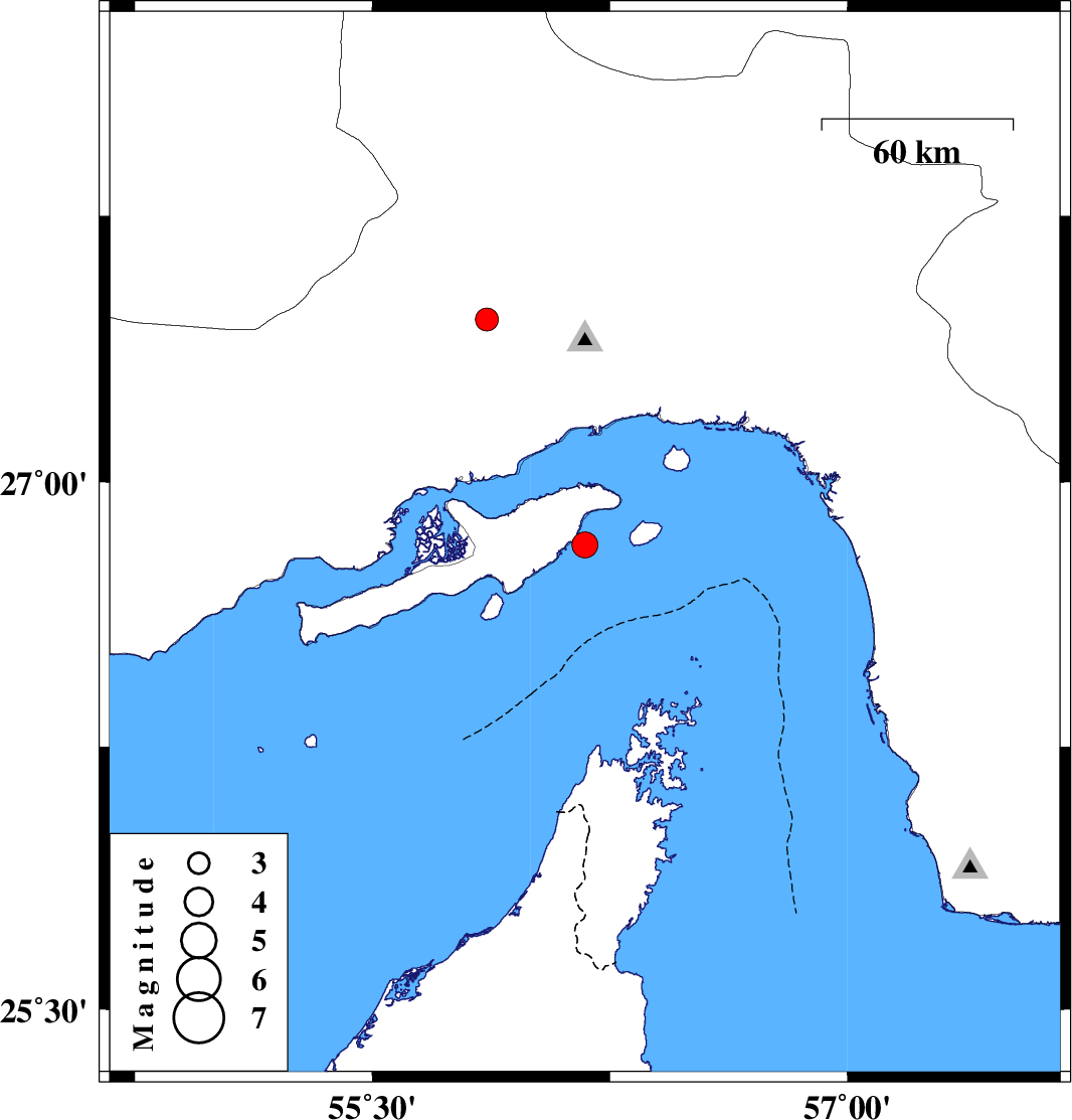 | 2025/05/23 | 14:30:17.1 | 18:00:17.1 | 26.823 | 56.171 | 12 | ML3.6 | Persian Gulf, 18 km South of Qeshm | ||