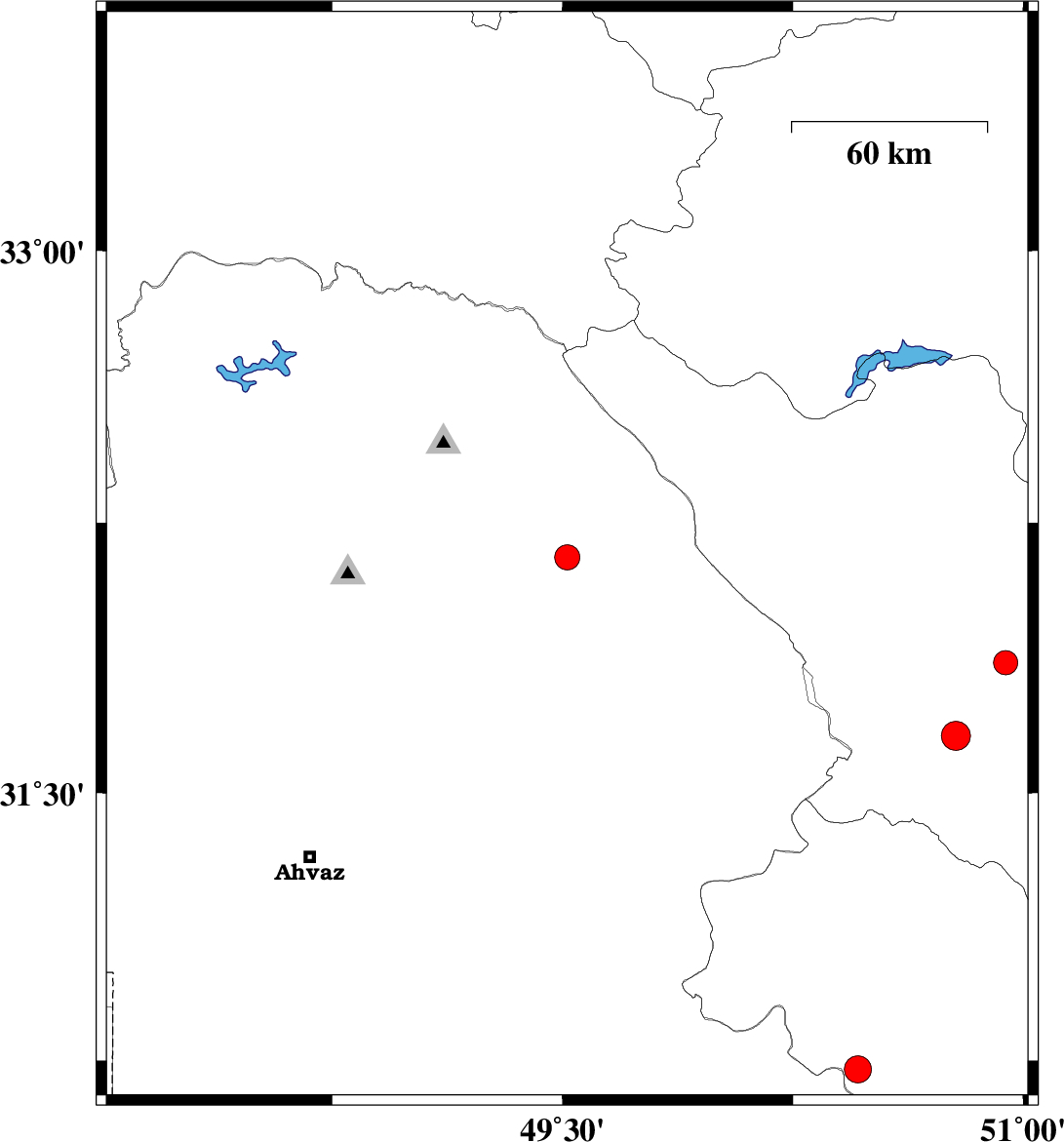 | 2025/06/06 | 17:01:36.5 | 20:31:36.5 | 32.154 | 49.515 | 12 | ML3.7 | Khoozestan Province, 32 km North-East of Masjed Soleyman | ||