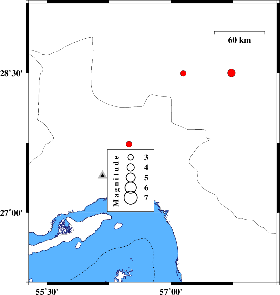 | 2025/06/16 | 00:42:02.3 | 04:12:02.3 | 26.977 | 55.542 | 12 | ML3.2 | Hormozgan Province, 72 km -West of Qeshm |