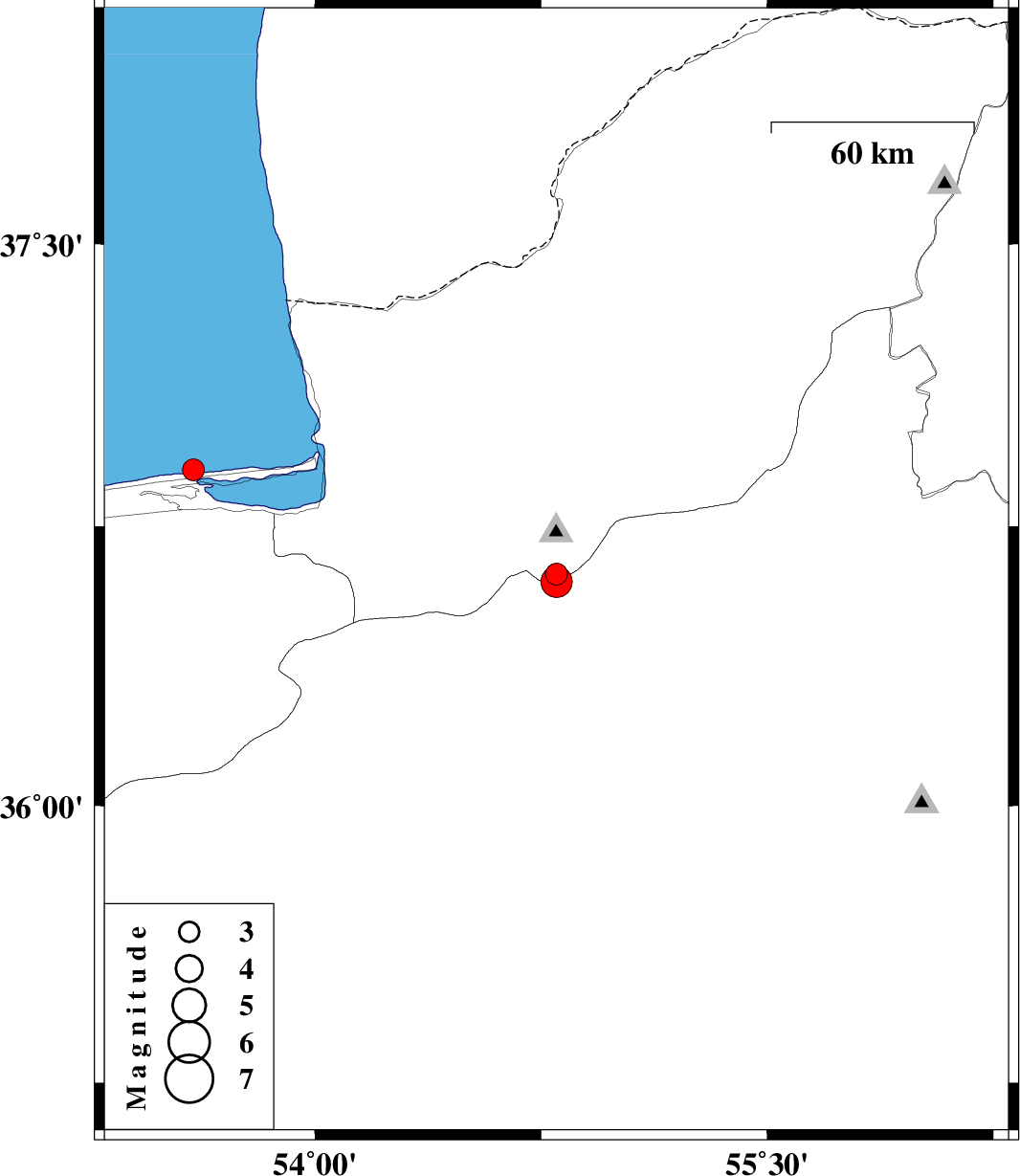 | 2025/06/20 | 11:58:41.1 | 15:28:41.1 | 36.9 | 53.596 | 12 | ML3.2 | Caspian Sea, 23 km North of Behshahr |
