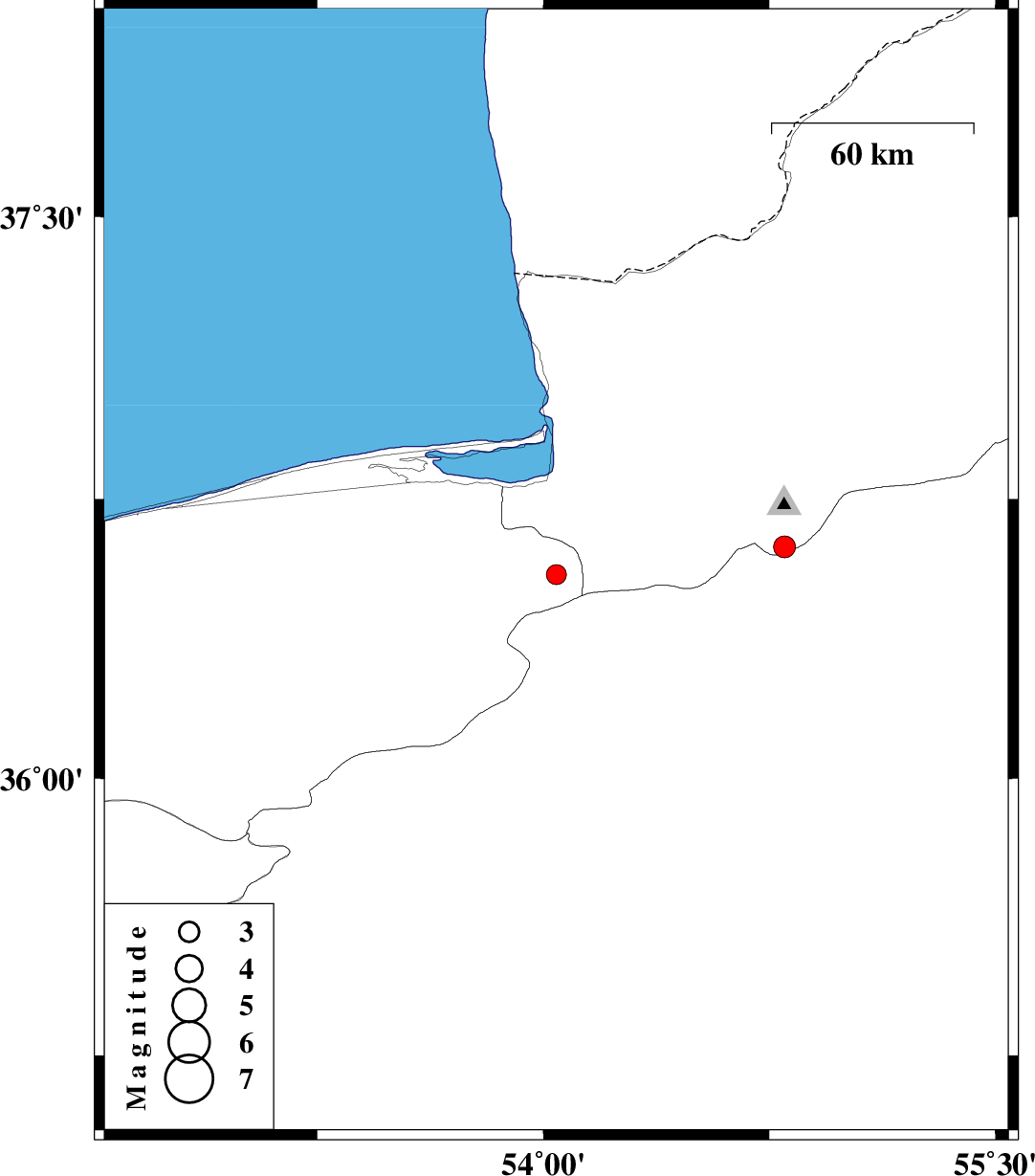 | 2025/06/27 | 14:15:02.1 | 17:45:02.1 | 36.622 | 54.801 | 12 | ML3.3 | Golestan Province, 32 km South of Ali Abad |