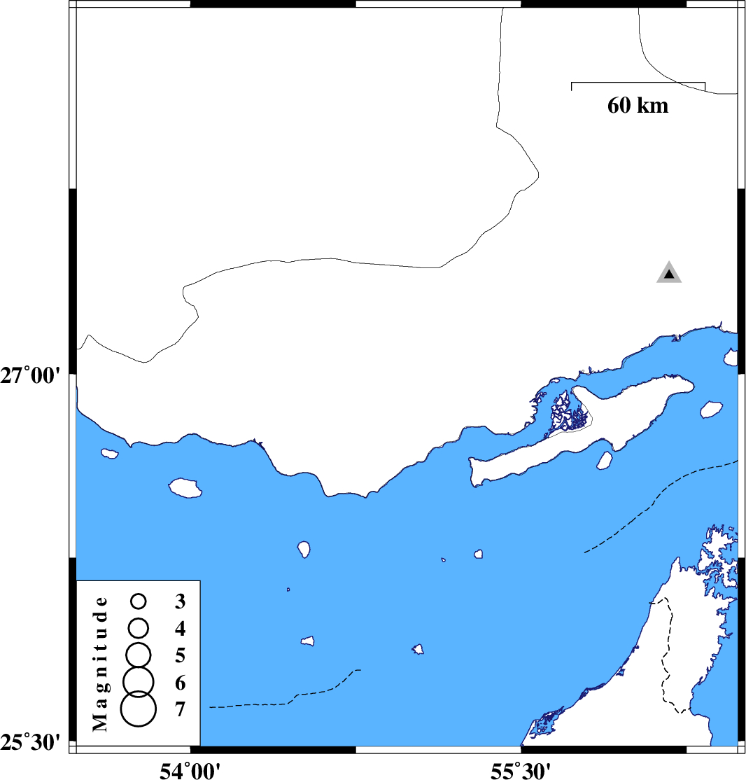 | 2025/07/06 | 02:28:47.4 | 05:58:47.4 | 26.978 | 54.982 | 12 | ML3.6 | Hormozgan Province, 52 km North-East of Bandar-e lengeh |