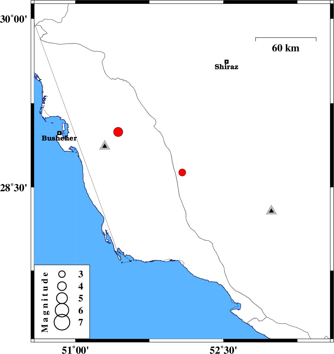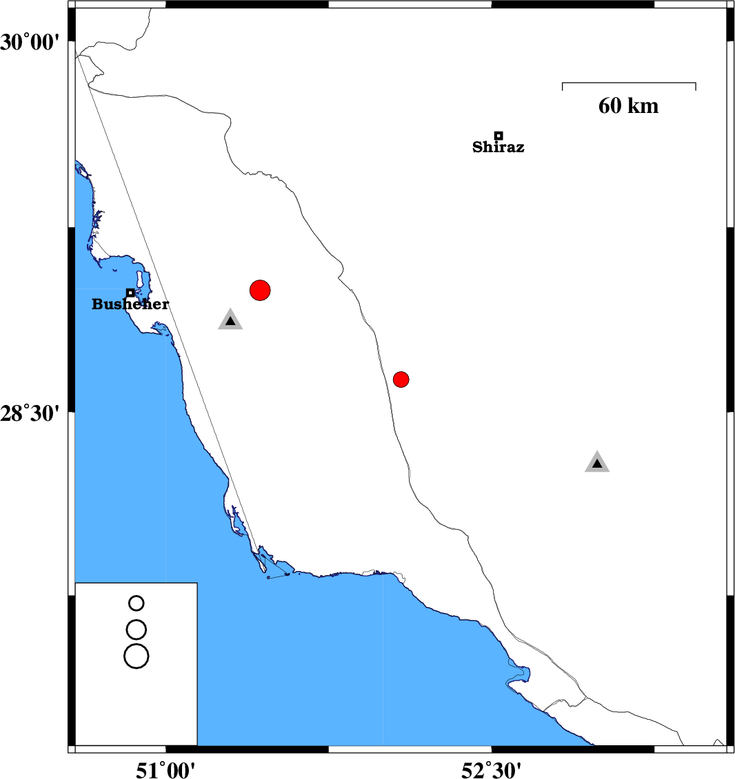 | 2025/06/17 | 15:25:38.0 | 18:55:38.0 | 28.994 | 51.434 | 12 | ML4.2 | Bushehr Province, 21 km North-East of Ahram |