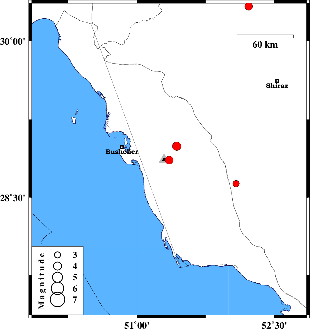 | 2025/07/10 | 03:24:11.1 | 06:54:11.1 | 28.859 | 51.352 | 27 | ML4 | Bushehr Province, 9 km of Ahram | ||