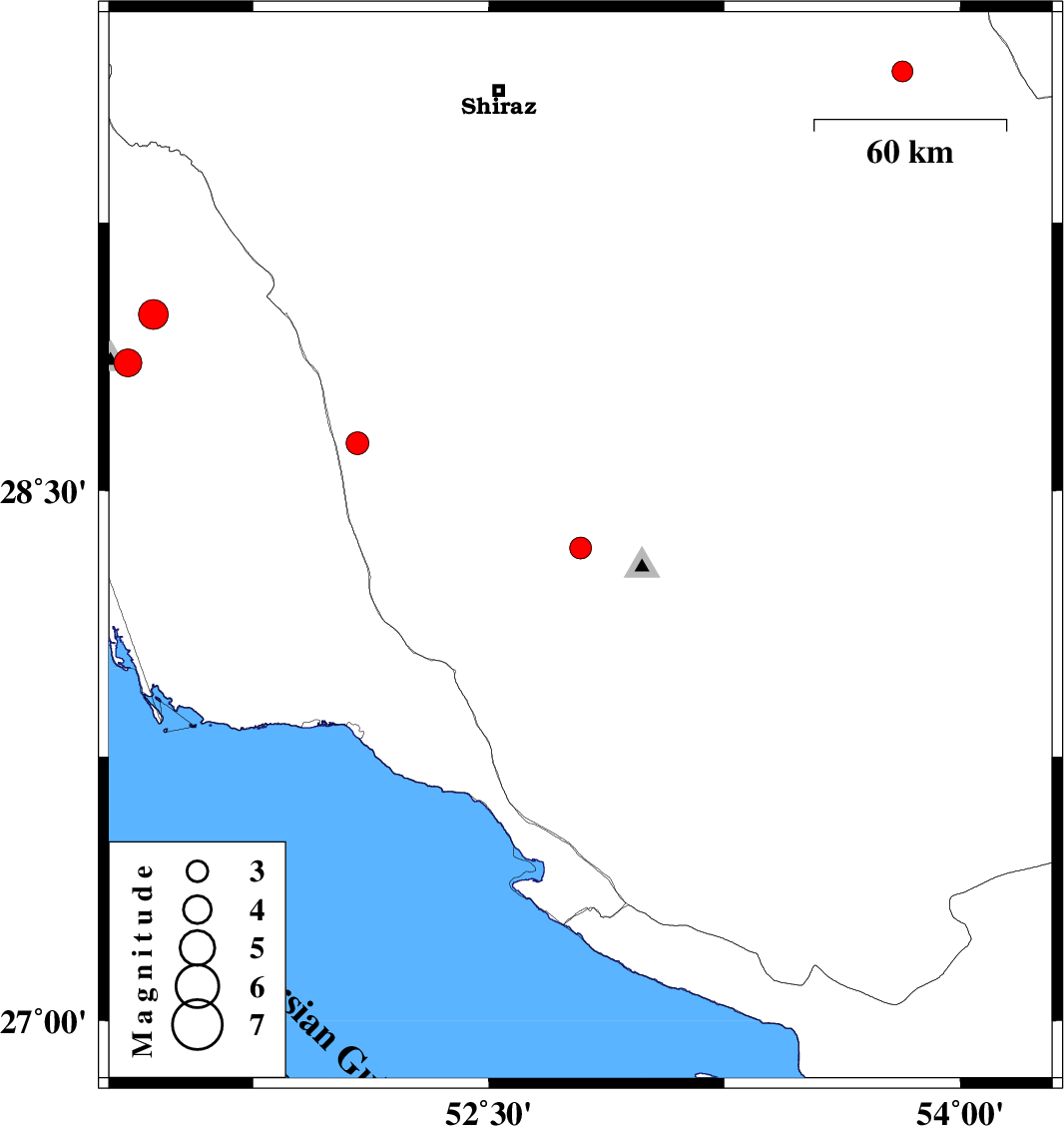 2025/06/17 | 15:25:38.0 | 18:55:38.0 | 28.994 | 51.434 | 12 | ML4.2 | Bushehr Province, 21 km North-East of Ahram |