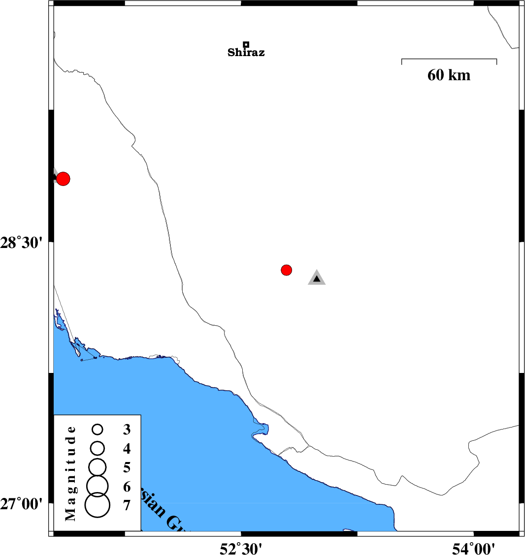 2025/07/15 | 22:25:21.2 | 01:55:21.2 | 28.338 | 52.792 | 10 | ML3.1 | Fars Province, 27 km South-West of Qir va Karzin | ||