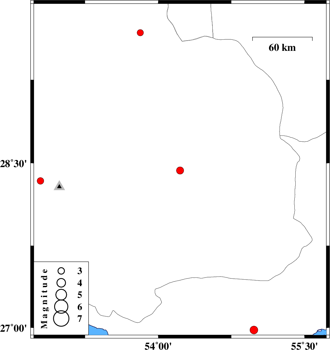 | 2025/07/06 | 02:28:47.4 | 05:58:47.4 | 26.978 | 54.982 | 12 | ML3.6 | Hormozgan Province, 52 km North-East of Bandar-e lengeh | ||