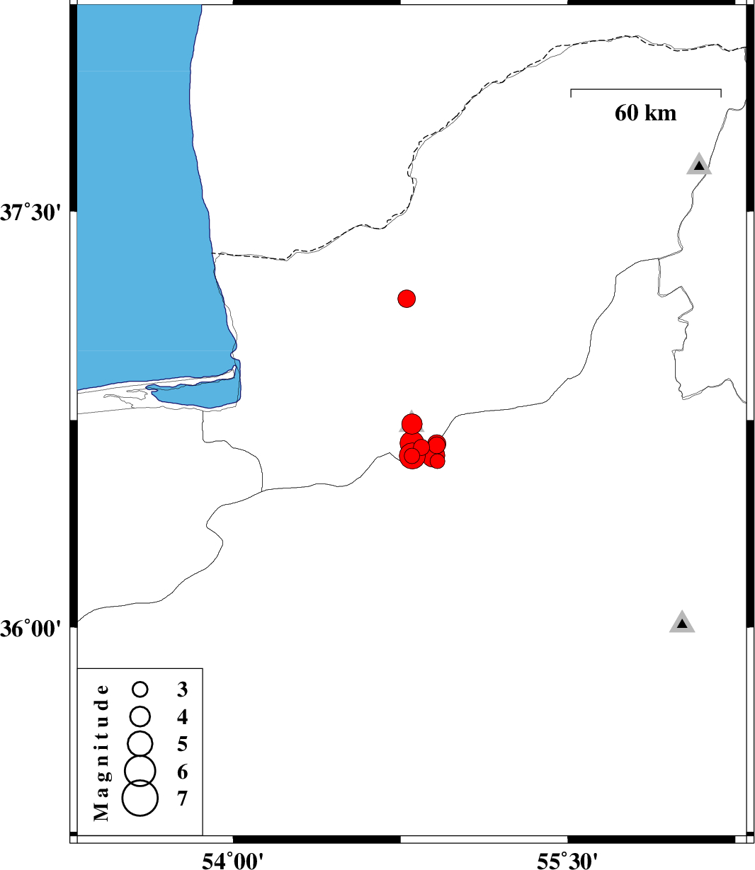 2025/07/28 18:05:09.8 21:35:09.8 36.60254.91512 ML3 Semnan Province, 21 km North of Shahrud