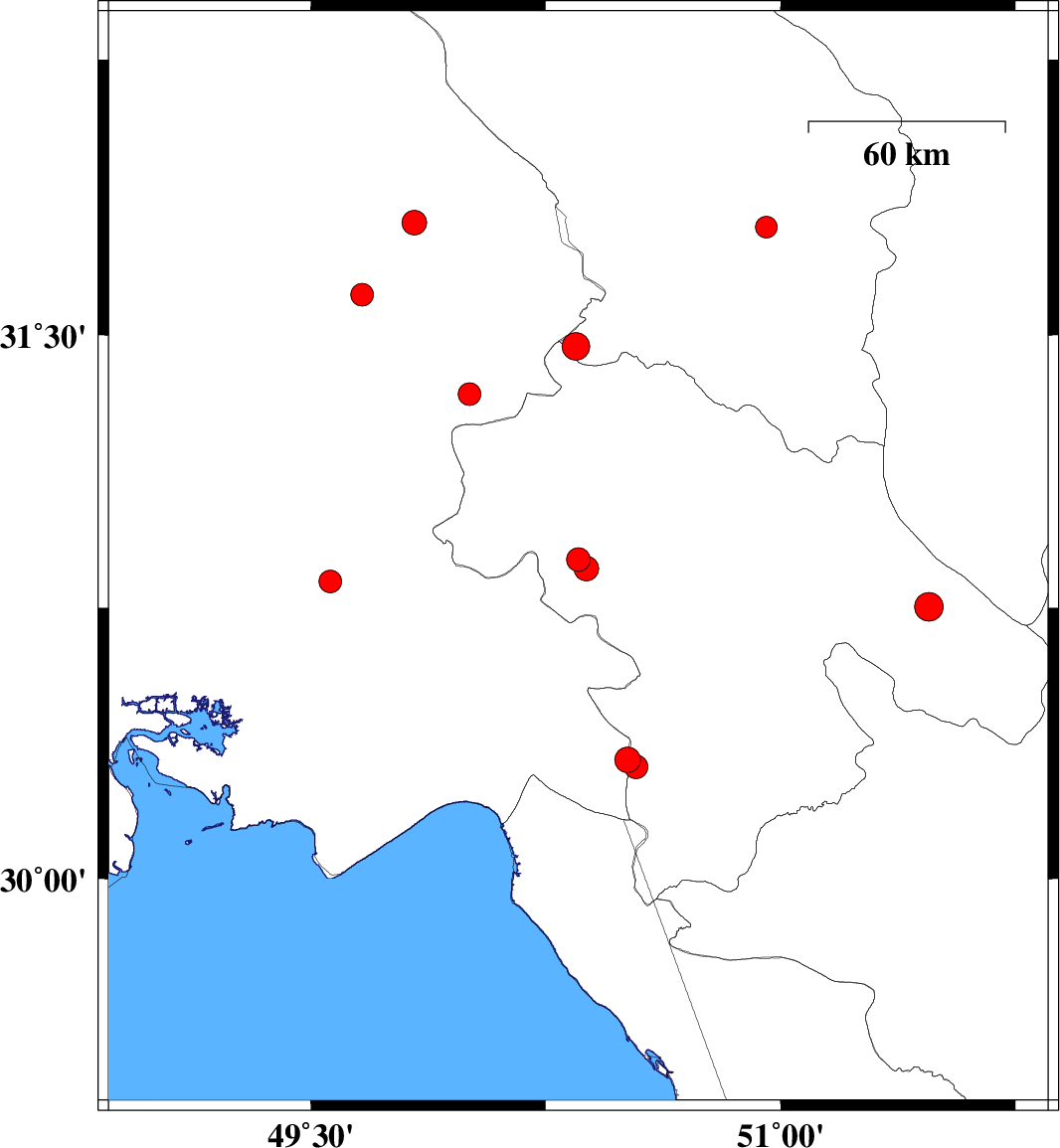 Khoozestan Province, 22 km South-East of Bagh Malek | |