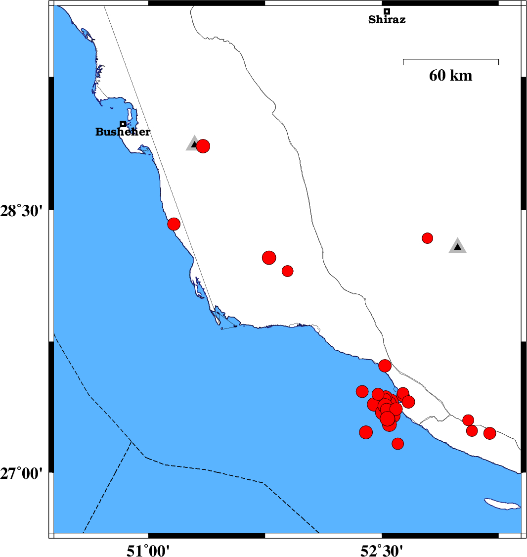 2025/08/09 20:14:30.8 23:44:30.8 28.15151.89412 ML3.3 Bushehr Province, 40 km North-West of Bandar-e kangan