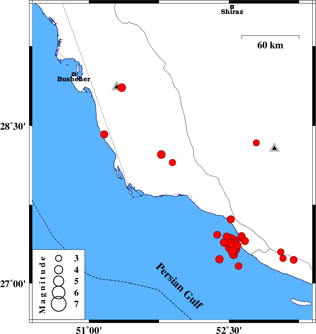 Bushehr Province, 53 km North-West of Bandar-e kangan | |