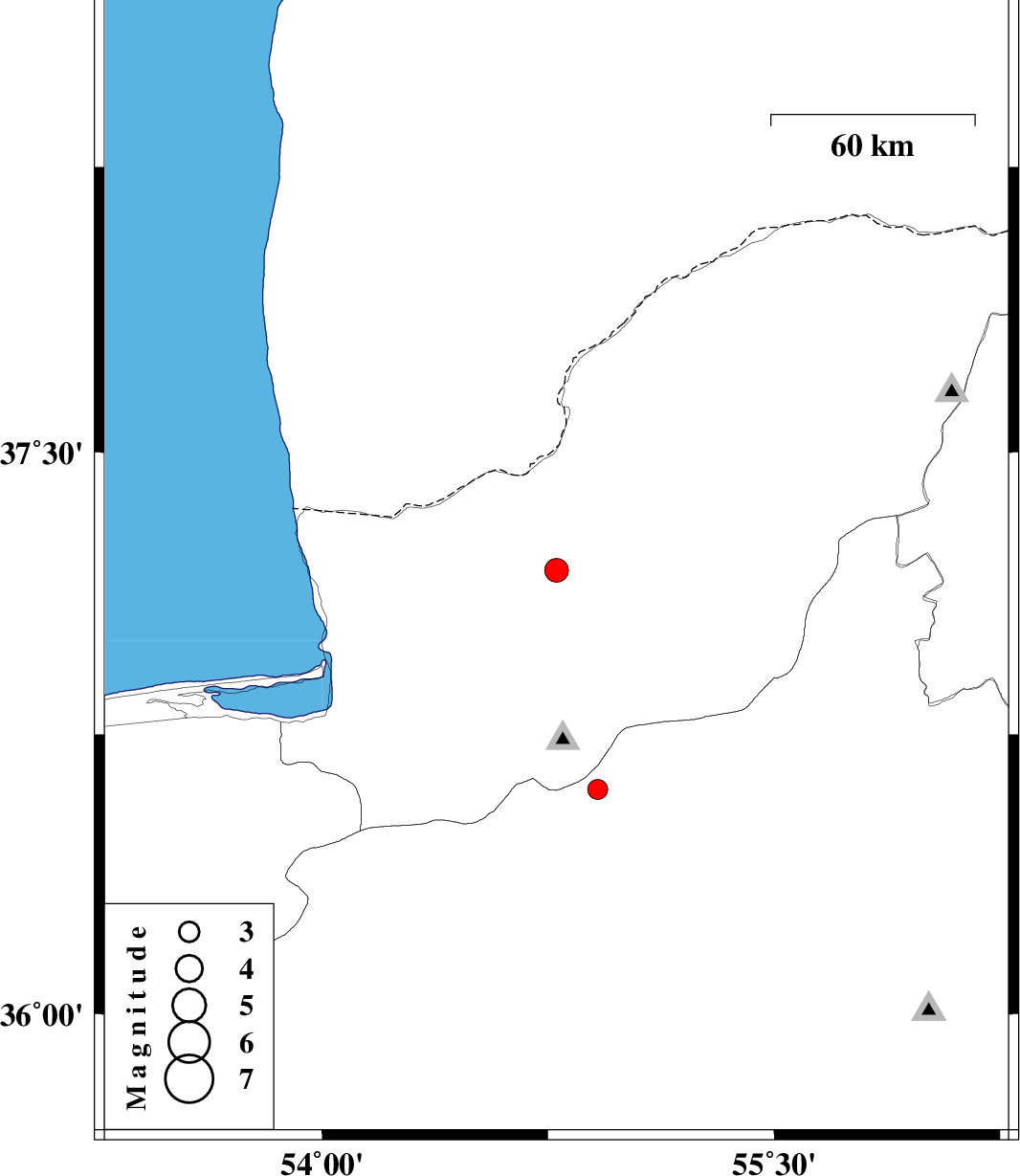 | 2025/08/01 | 16:03:55.5 | 19:33:55.5 | 37.187 | 54.778 | 20 | ML3.5 | Golestan Province, 32 km North of Ali Abad | ||