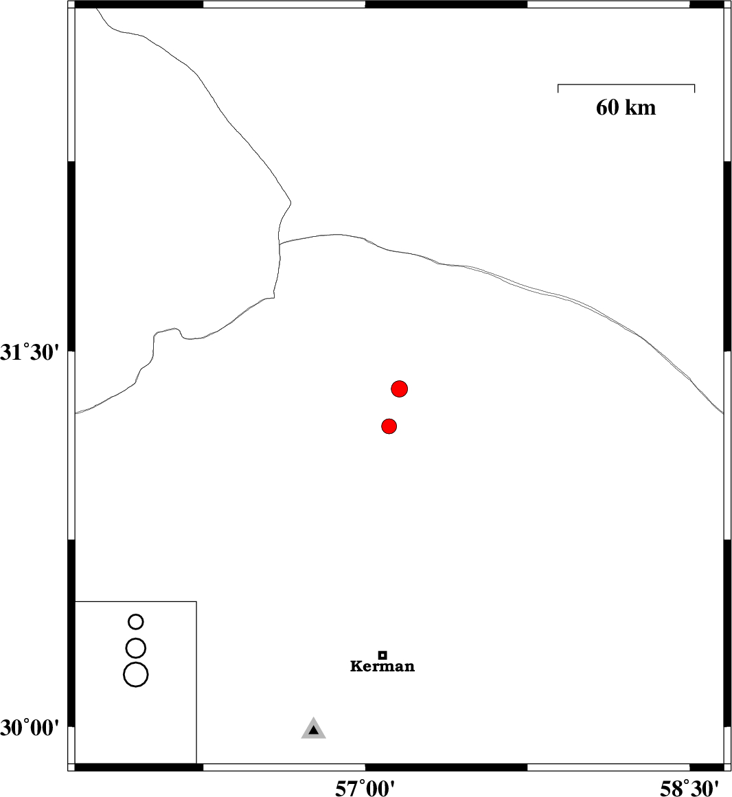 | 2025/08/24 | 02:39:57.1 | 06:09:57.1 | 31.351 | 57.157 | 12 | ML3.4 | Kerman Province, 34 km -East of Ravar |