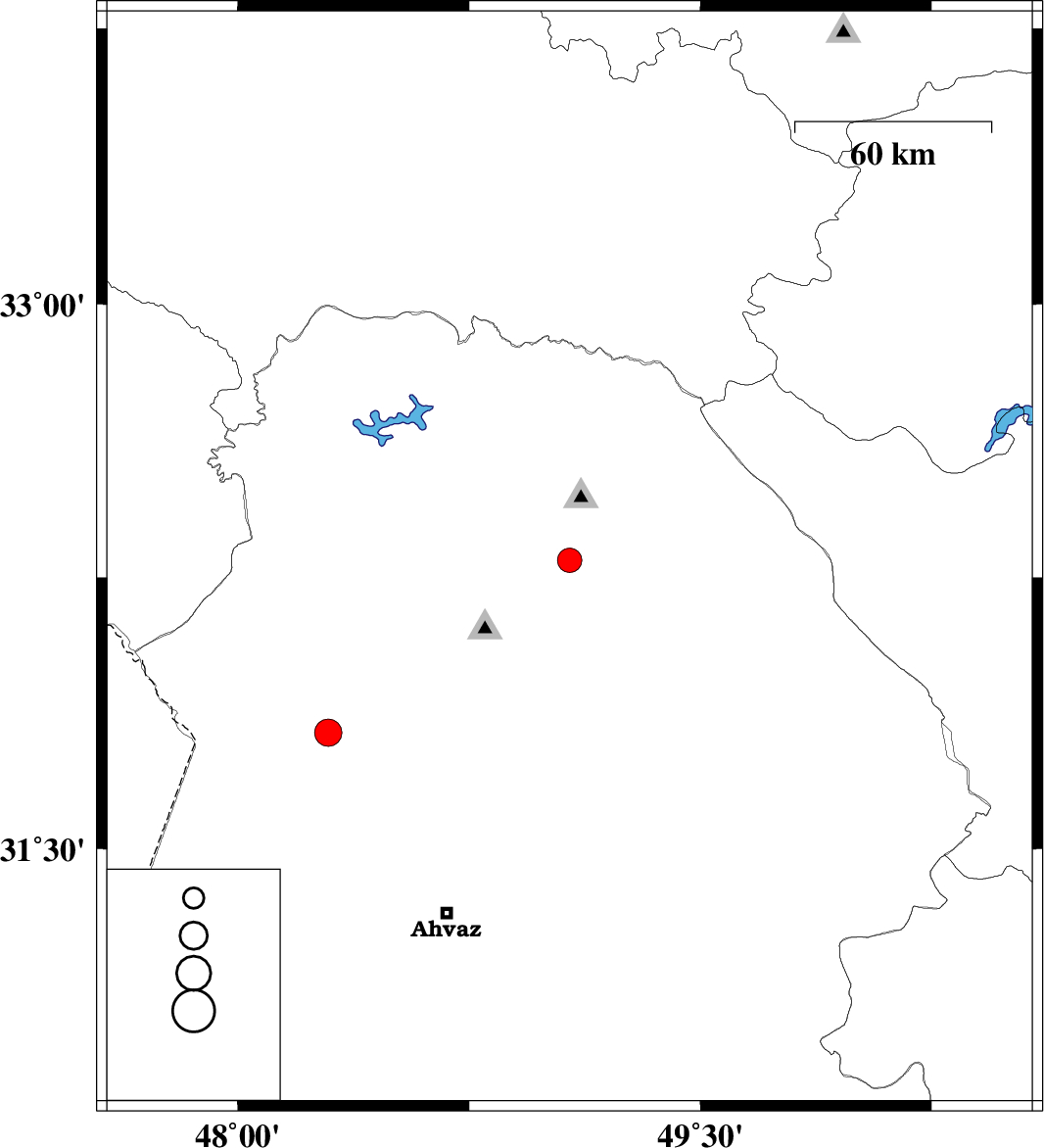 | 2025/08/20 | 23:03:43.6 | 02:33:43.6 | 31.821 | 48.293 | 12 | ML4 | Khoozestan Province, 31 km North-East of Susangerd |