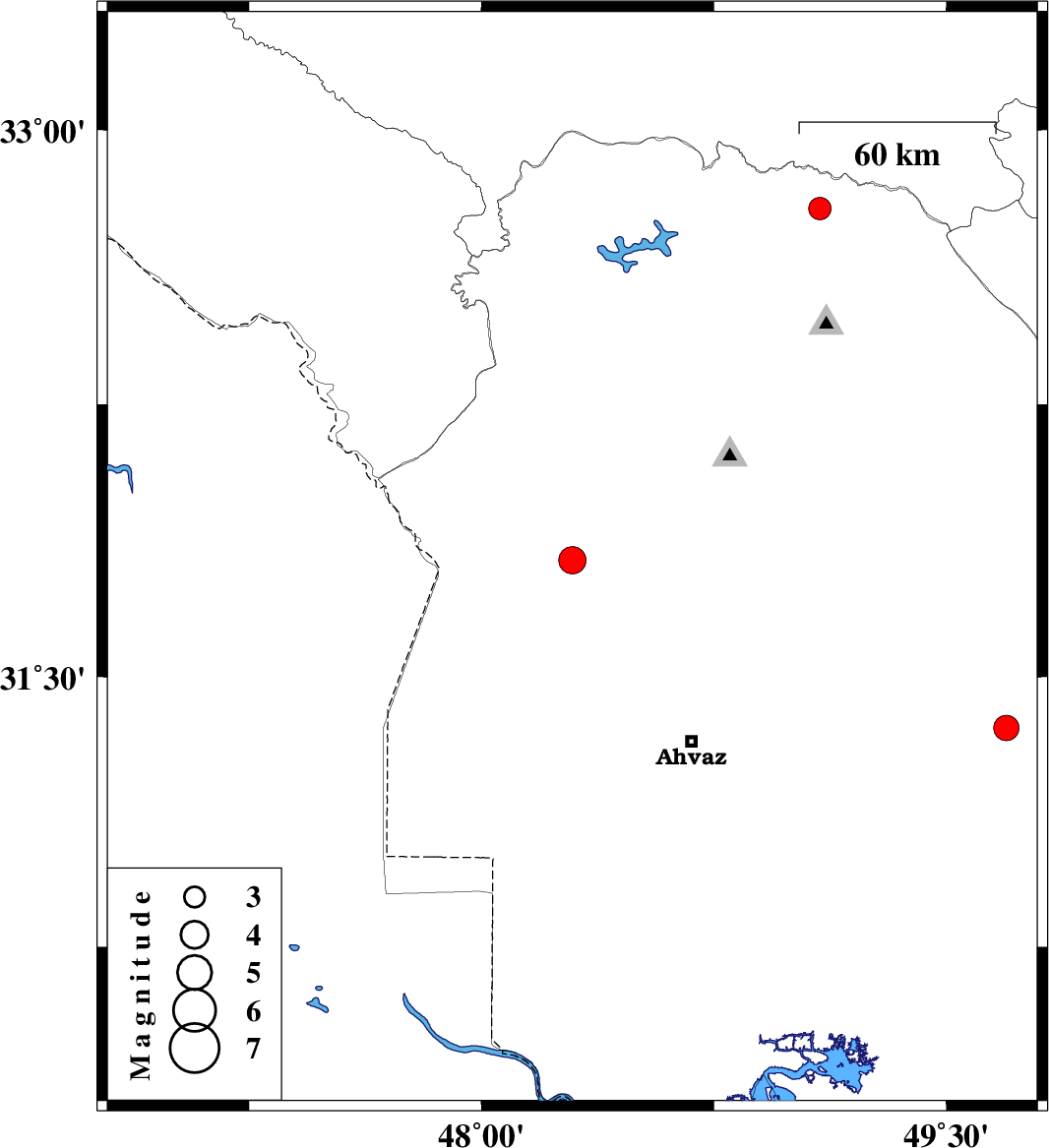 | 2025/08/20 | 23:03:43.6 | 02:33:43.6 | 31.821 | 48.293 | 12 | ML4 | Khoozestan Province, 31 km North-East of Susangerd | ||