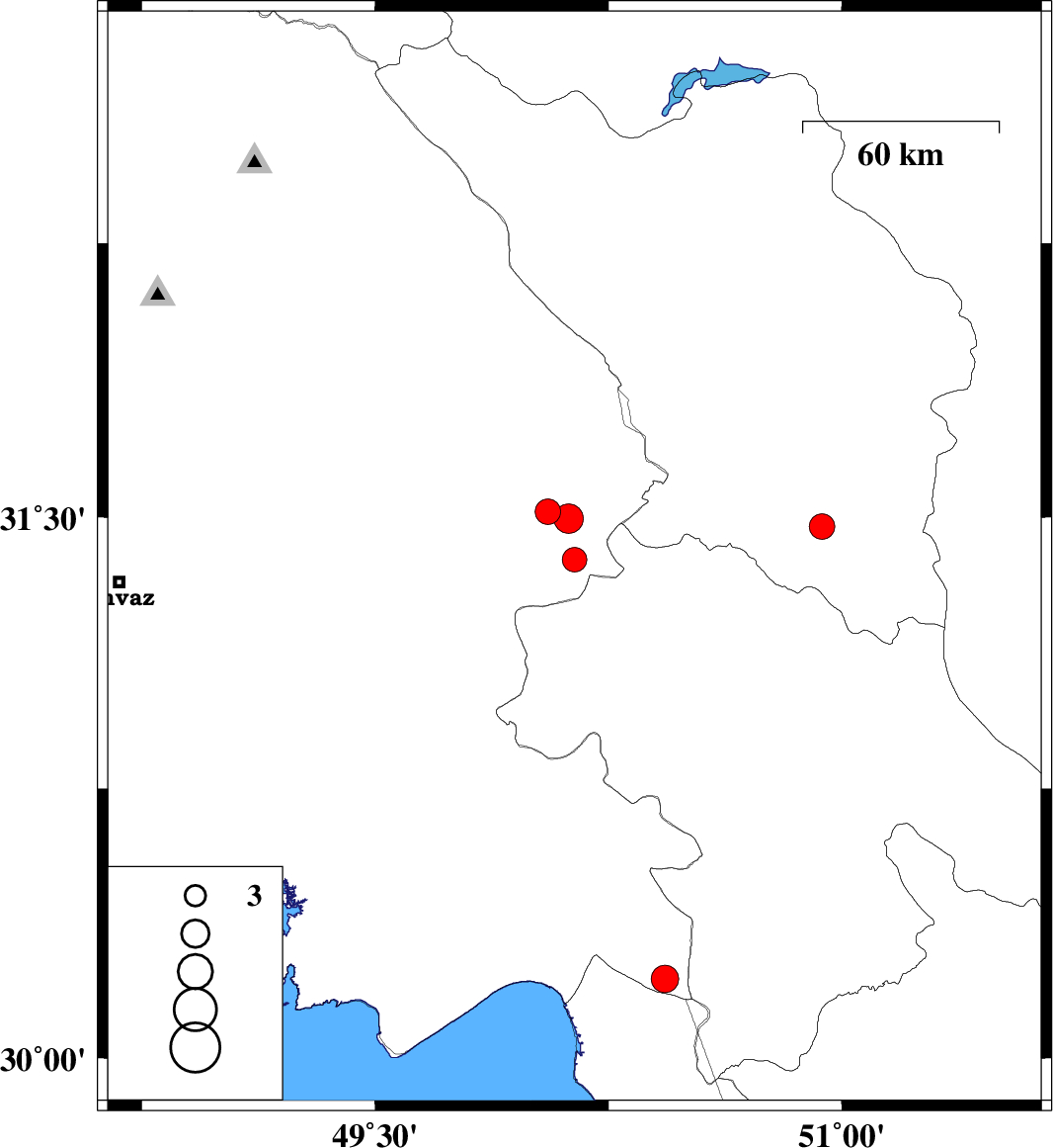 2025/08/30 19:43:45.1 23:13:45.1 31.51550.05512 ML3.7 Khoozestan Province, 15 km -East of Bagh Malek
