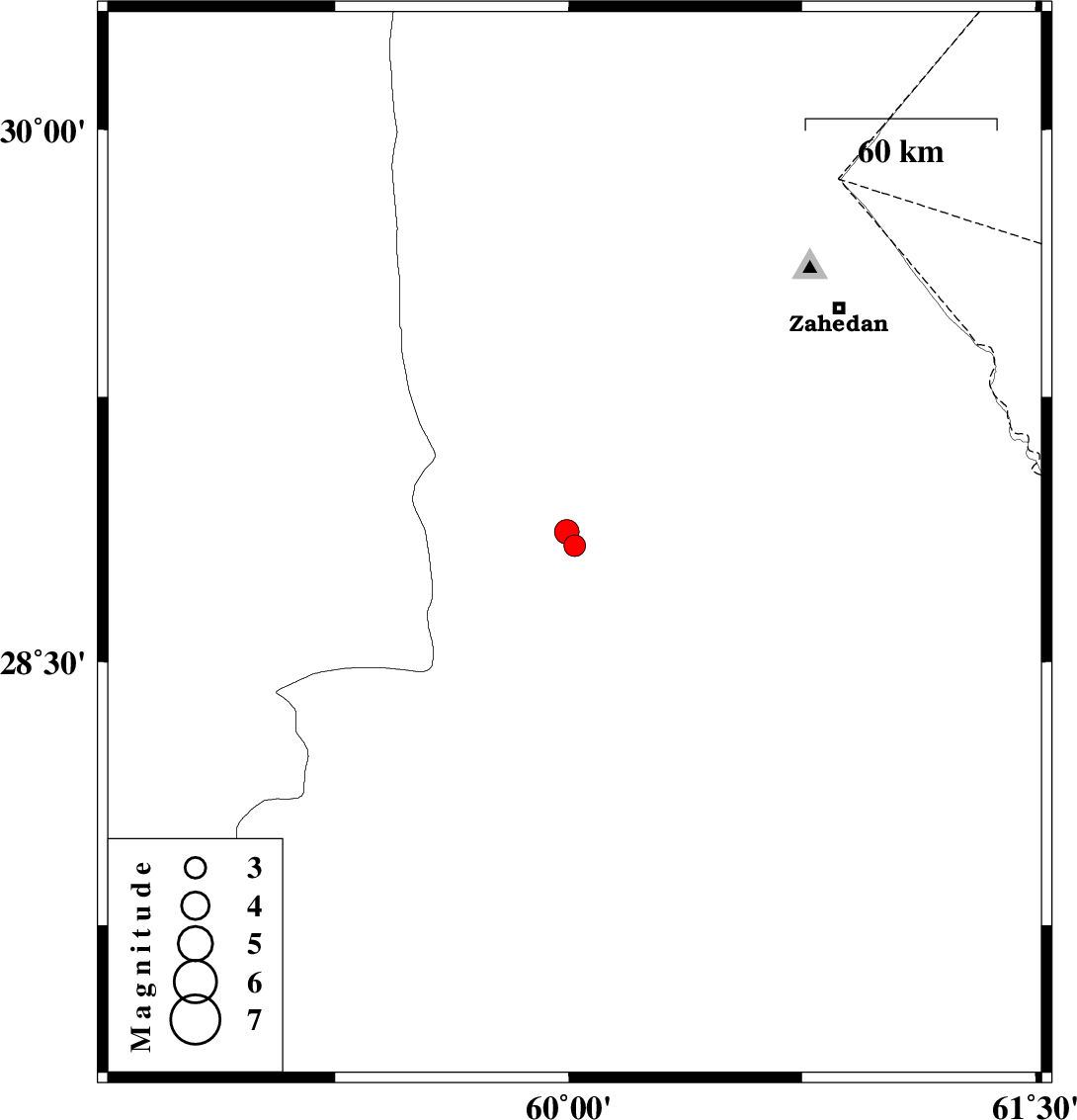 | 2025/09/04 | 02:14:06.6 | 05:44:06.6 | 28.868 | 59.993 | 12 | ML3.5 | Sistan va Baloochestan Province, 110 km South-West of Zahedan |