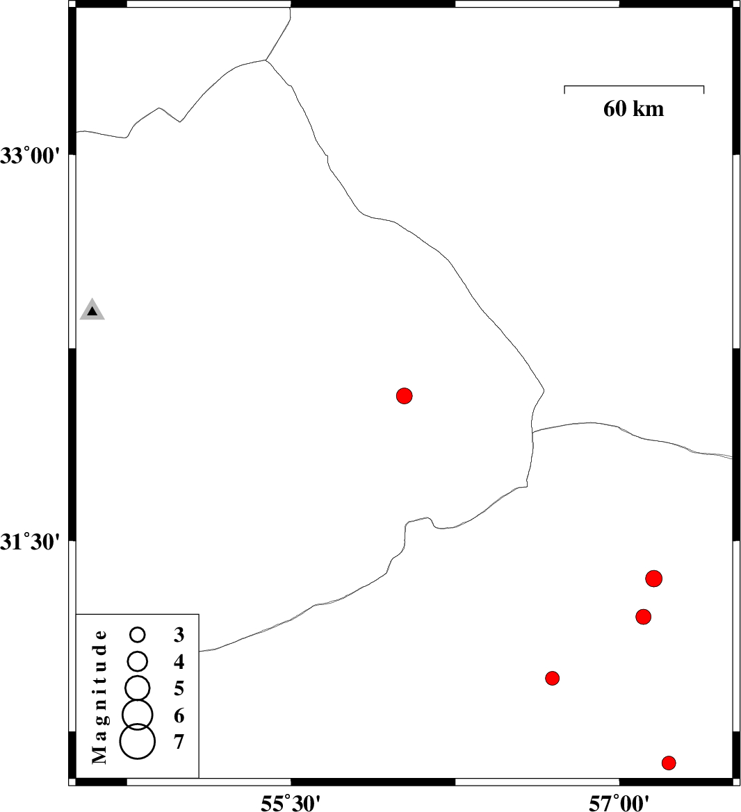 | 2025/08/31 | 22:04:45.3 | 01:34:45.3 | 30.626 | 57.225 | 12 | ML2.8 | Kerman Province, 40 km North-East of Kerman | ||