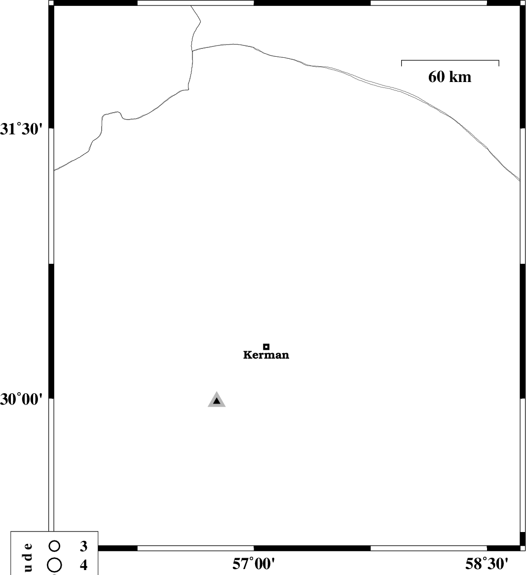 | 2025/09/15 | 09:07:24.1 | 12:37:24.1 | 30.673 | 57.212 | 12 | ML3.5 | Kerman Province, 45 km North-East of Kerman |