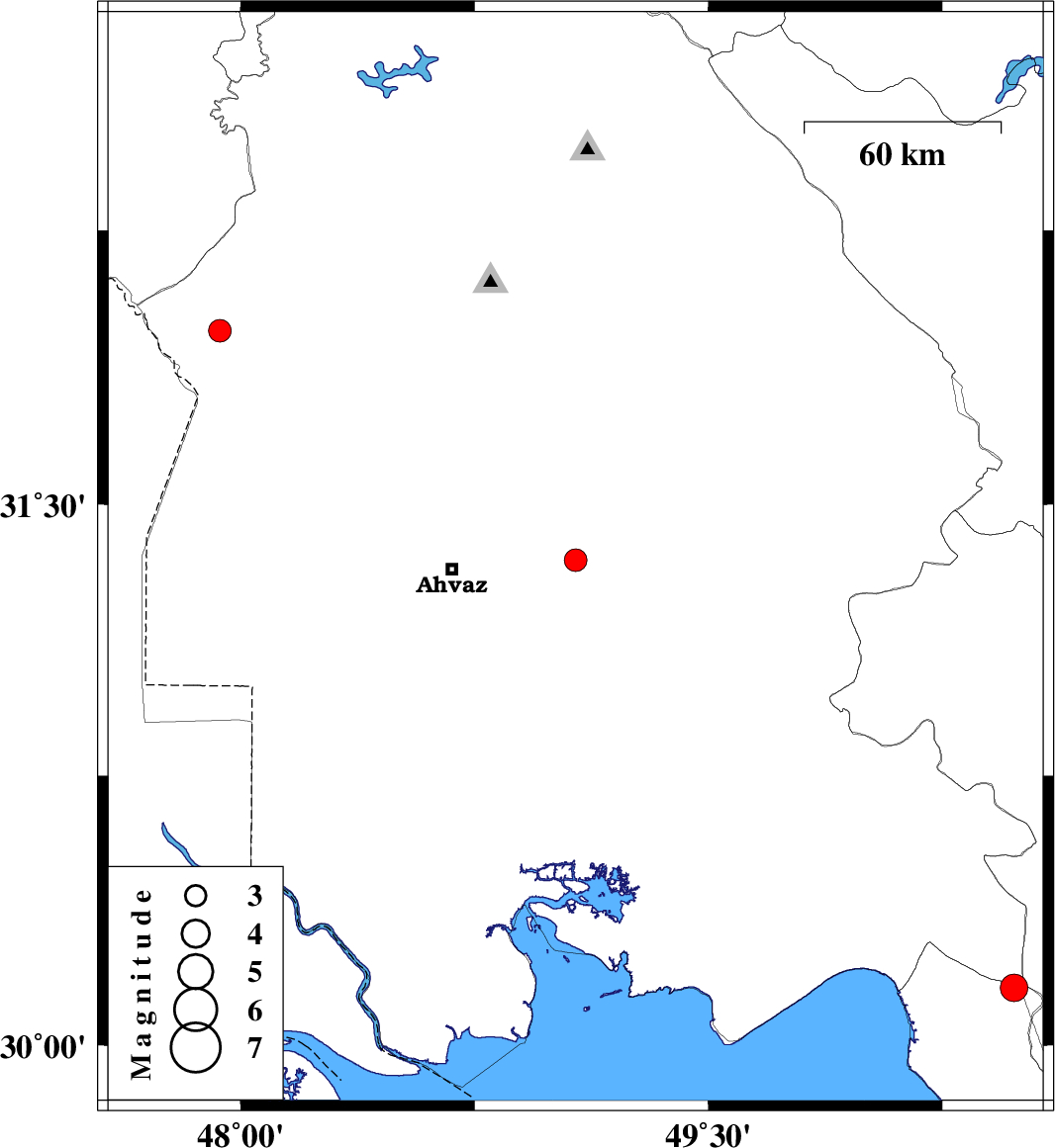 | 2025/09/12 | 06:57:09.8 | 10:27:09.8 | 31.975 | 47.932 | 12 | ML3.3 | Khoozestan Province, 39 km South-West of Shush |