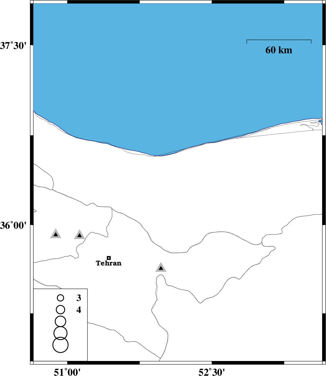 2025/09/20 | 19:43:39.2 | 23:13:39.2 | 36.343 | 52.147 | 7 | ML2.8 | Mazandaran Province, 23 km South-West of Amol |
