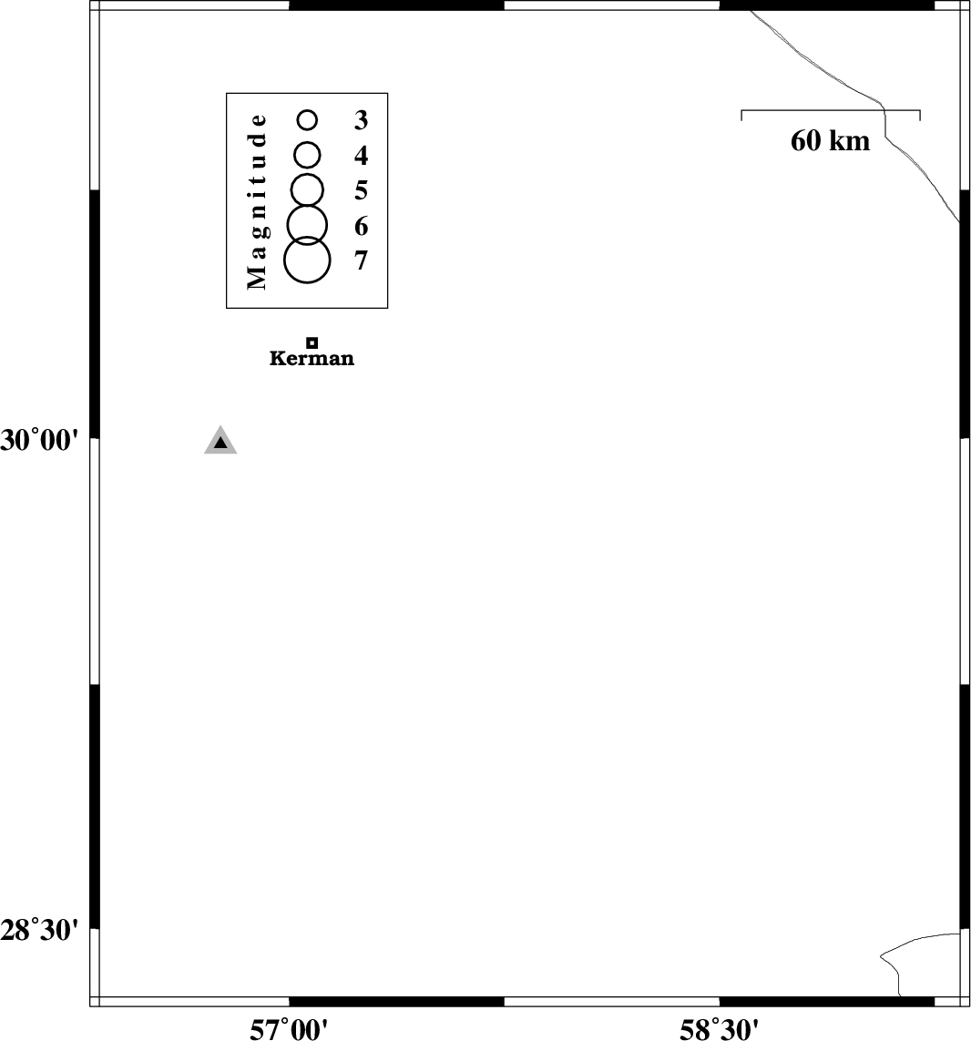 2025/09/15 | 09:07:24.1 | 12:37:24.1 | 30.673 | 57.212 | 12 | ML3.5 | Kerman Province, 45 km North-East of Kerman |