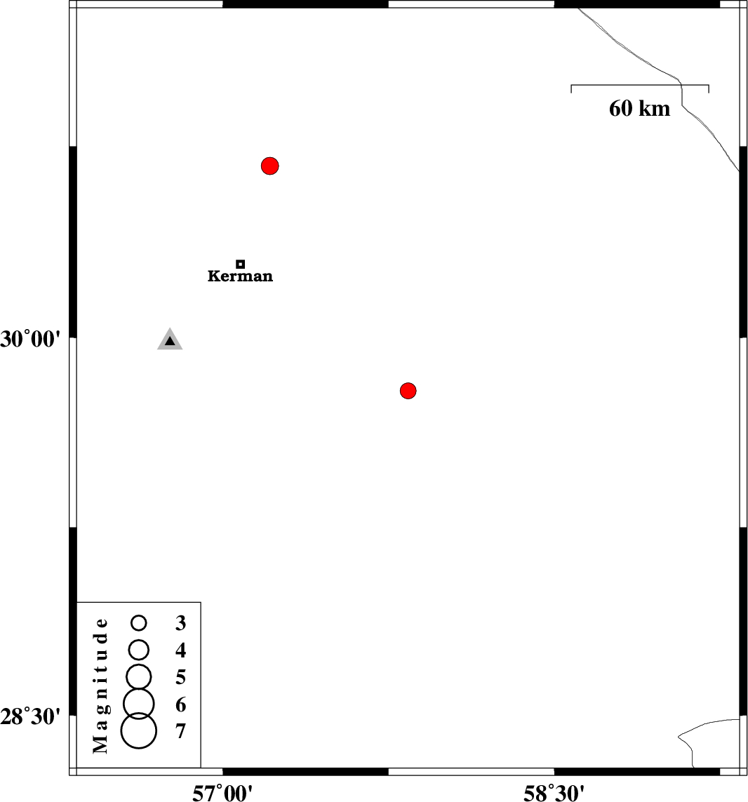 | 2025/09/15 | 09:07:24.1 | 12:37:24.1 | 30.673 | 57.212 | 12 | ML3.5 | Kerman Province, 45 km North-East of Kerman |