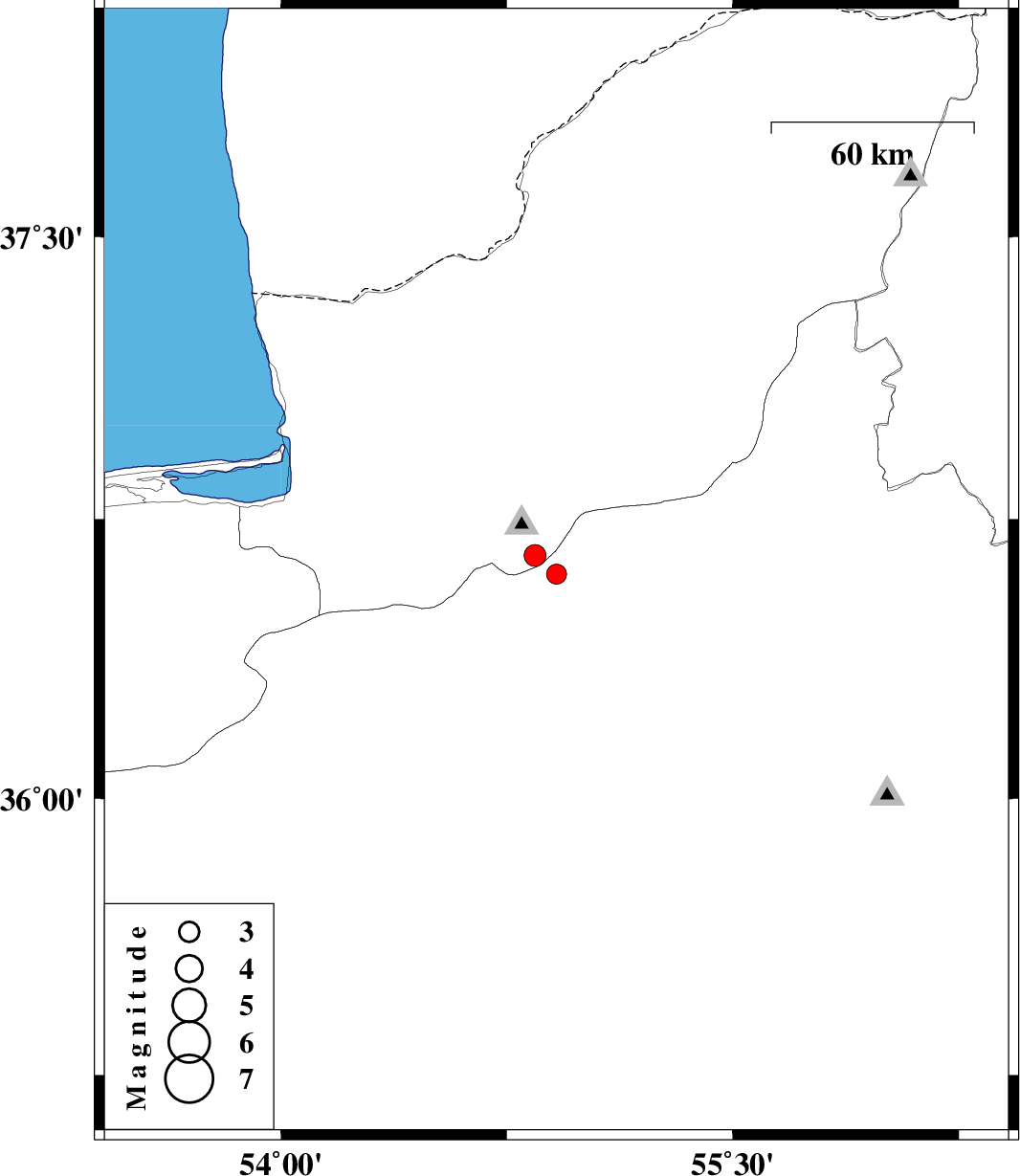 | 2025/07/23 | 09:44:33.6 | 13:14:33.6 | 36.652 | 54.844 | 7 | ML3.3 | Golestan Province, 28 km South of Ali Abad |