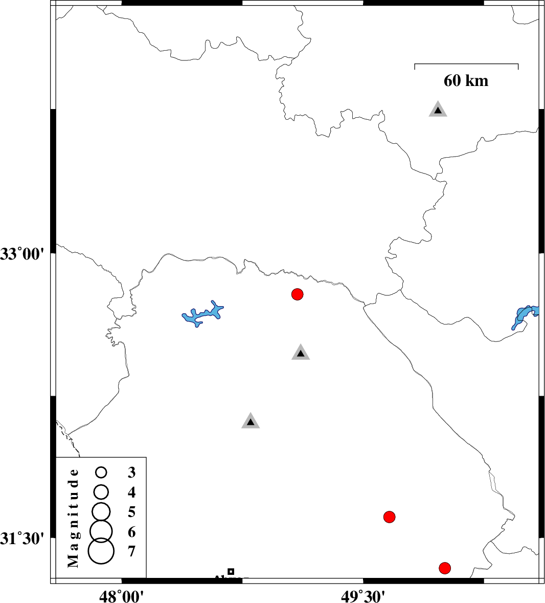 | 2025/07/13 | 10:24:04.2 | 13:54:04.2 | 31.338 | 50.007 | 12 | ML3.2 | Khoozestan Province, 22 km South-East of Bagh Malek | ||