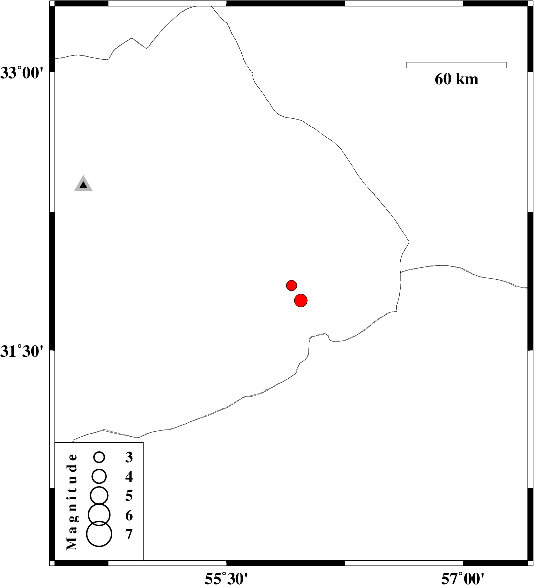 | 2025/07/11 | 16:43:57.4 | 20:13:57.4 | 31.77 | 55.969 | 12 | ML3.6 | Yazd Province, 57 km North-East of Bafq |