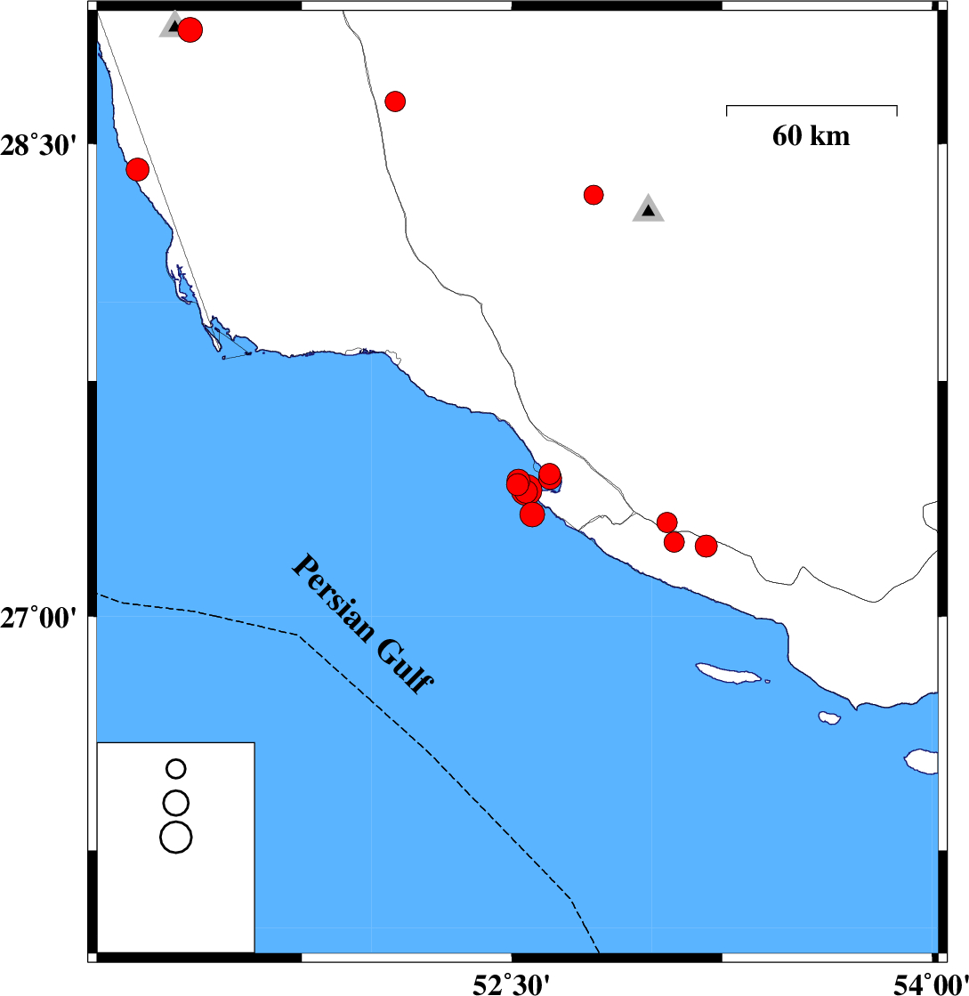 | Prel. Rep. | Date | Time(UTC) | Time(Local) | Lat. | Lon. | Depth | Mag. | Region | Waveform |