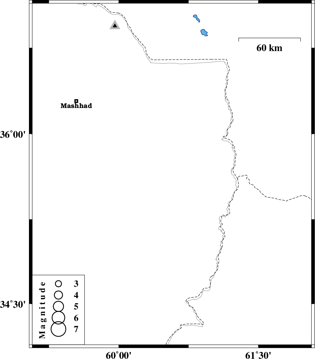 2025/10/04 | 23:00:11.4 | 02:30:11.4 | 35.635 | 60.571 | 12 | ML2.9 | Khorasan(center) Province, 44 km North of Torbat-e jam |
