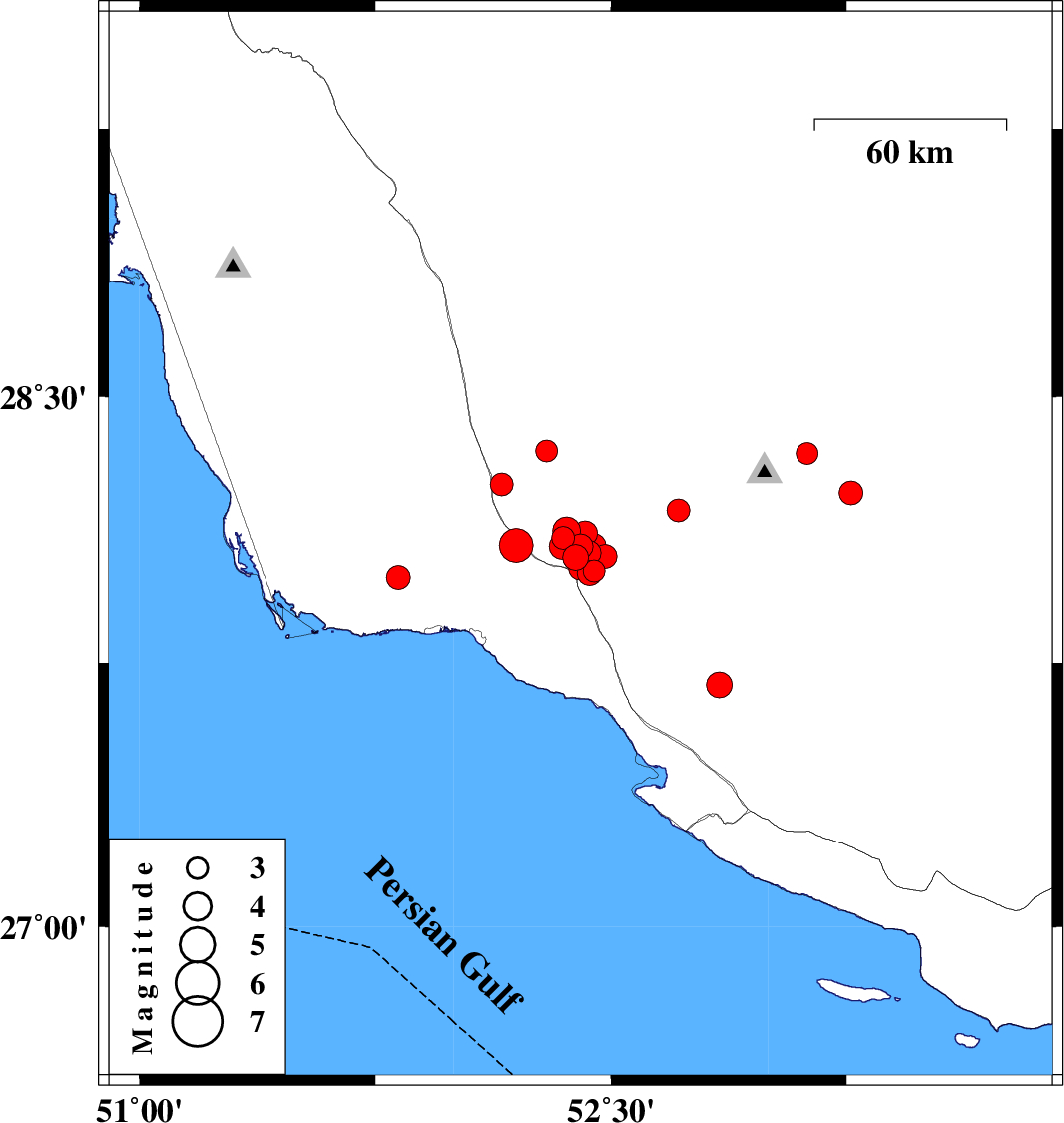 2025/01/30 12:51:05.7 16:21:05.7 28.0852.37912 ML4.4 Fars Province, 28 km North of Jam