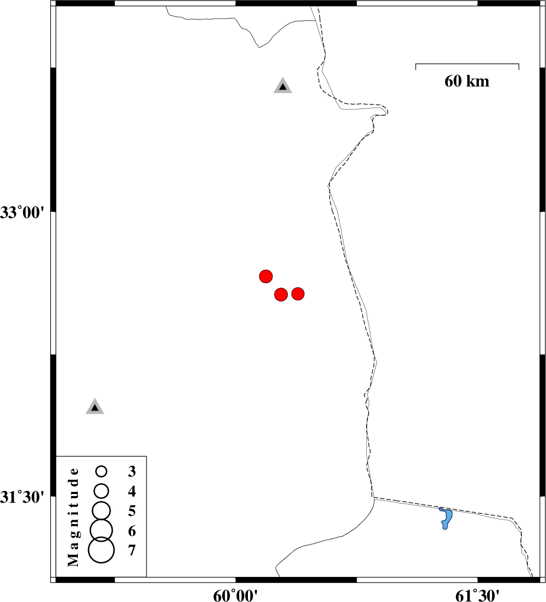 2025/10/10 | 07:07:43.7 | 10:37:43.7 | 32.565 | 60.281 | 16 | ML3.7 | Khorasan(south) Province, 46 km -East of Sarbisheh | ||
