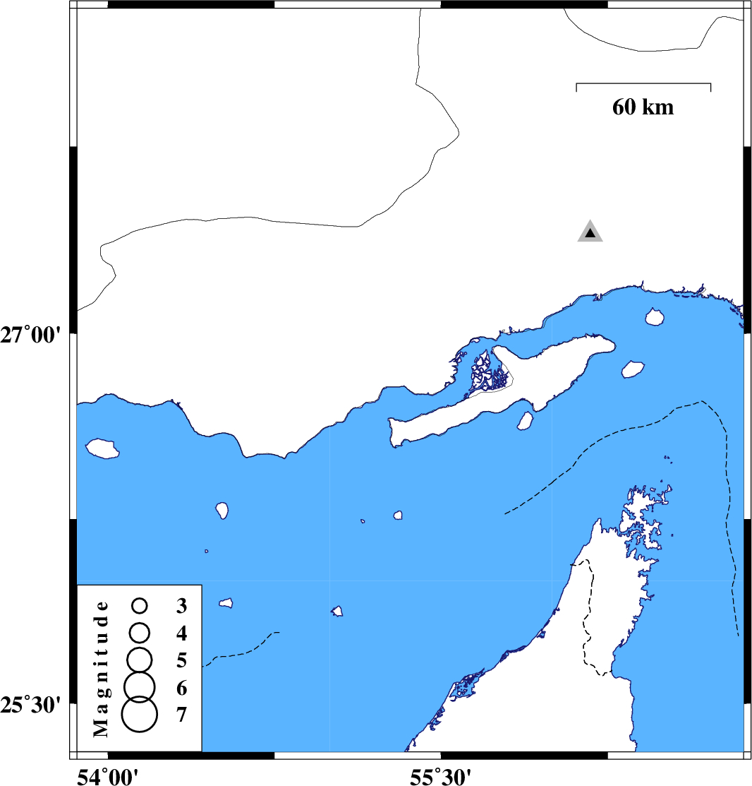 | 2025/10/16 | 20:09:22.5 | 23:39:22.5 | 26.803 | 55.361 | 12 | ML3.1 | Hormozgan Province, 59 km North-East of Bandar-e lengeh |