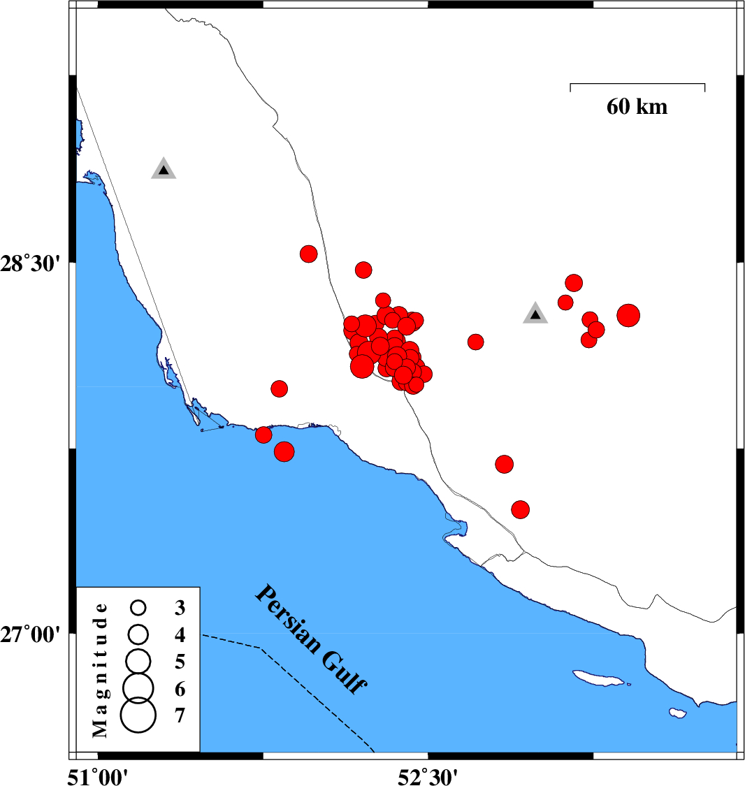 2025/01/30 12:51:05.7 16:21:05.7 28.0852.37912 ML4.4 Fars Province, 28 km North of Jam