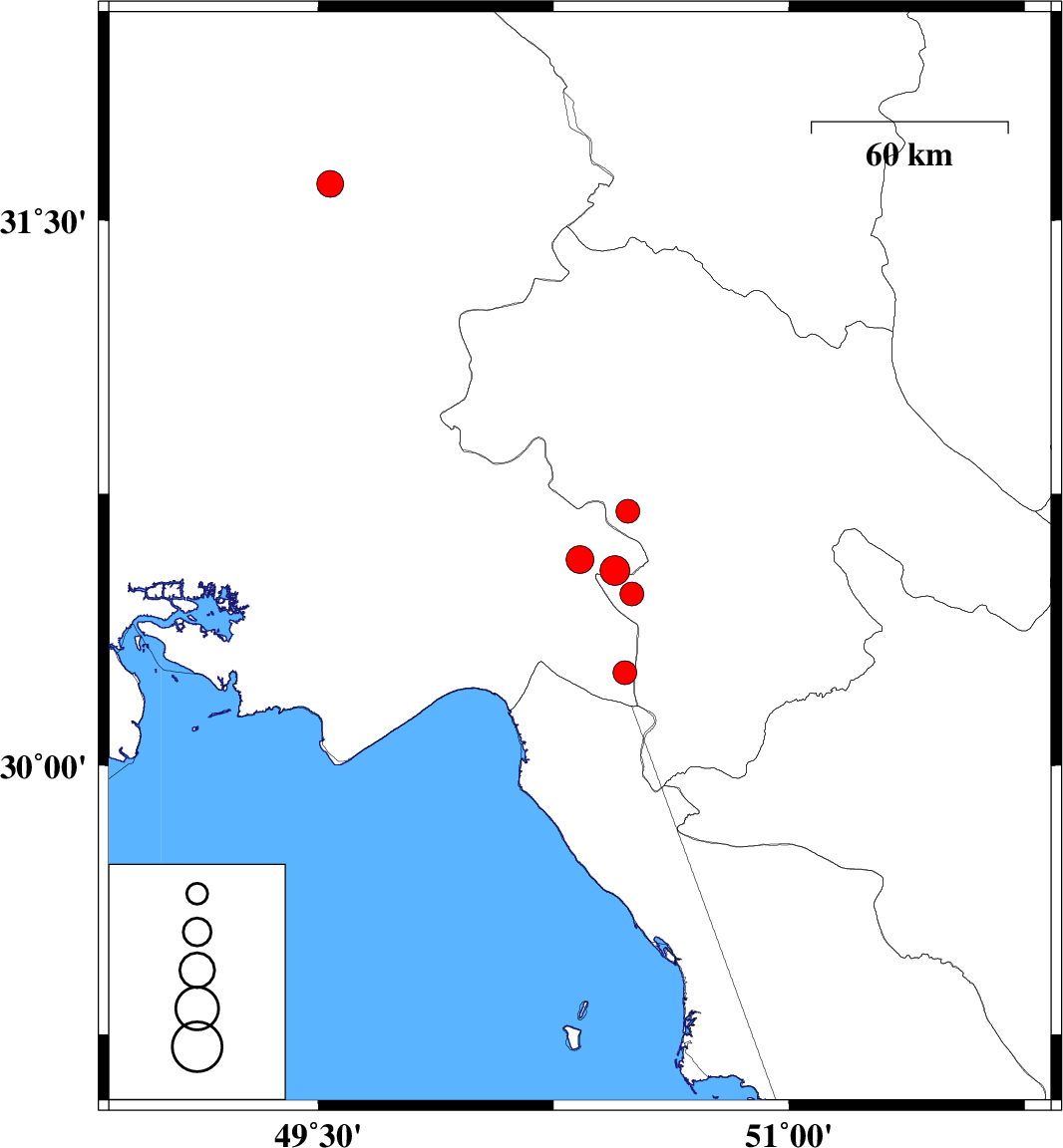 2025/01/13 08:15:41.0 11:45:41.0 30.56850.33412 ML4 Khoozestan Province, 9 km of Behbahan