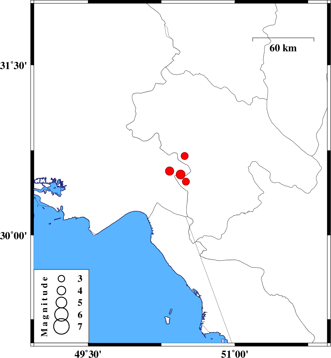 | 2025/01/13 | 08:18:15.9 | 11:48:15.9 | 30.538 | 50.446 | 12 | ML4.3 | Khoozestan Province, 20 km -East of Behbahan | ||
