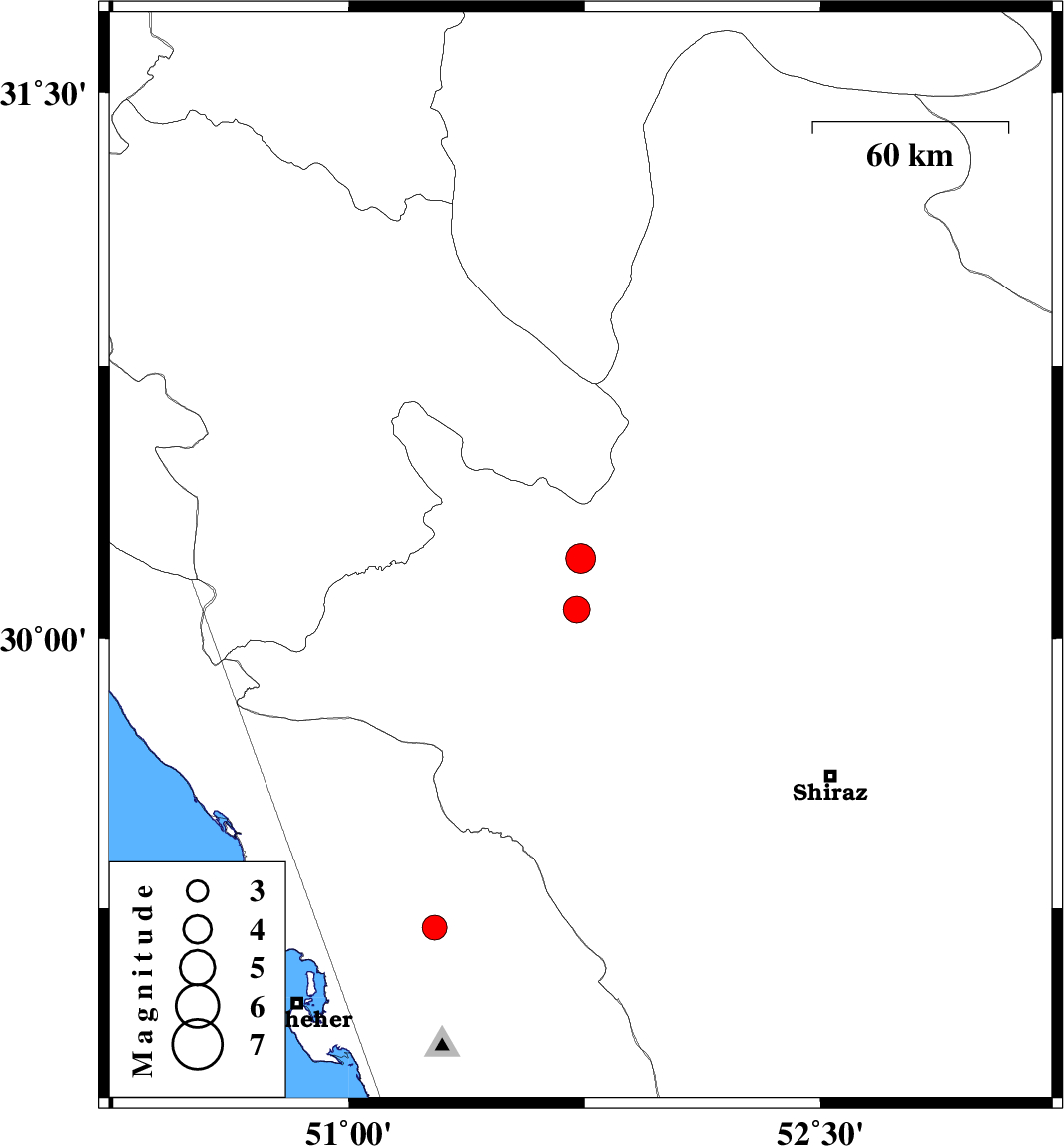 | 2025/10/13 | 00:22:44.1 | 03:52:44.1 | 29.196 | 51.274 | 12 | ML3.5 | Bushehr Province, 10 km of Borazjan |