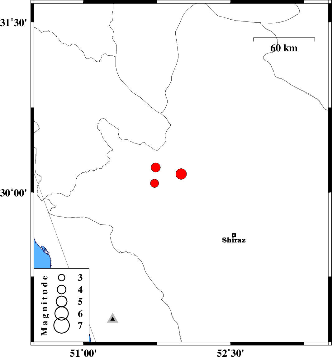 | 2025/10/19 | 03:12:05.8 | 06:42:05.8 | 30.08 | 51.725 | 12 | ML3.8 | Fars Province, 20 km -East of Nurabad |