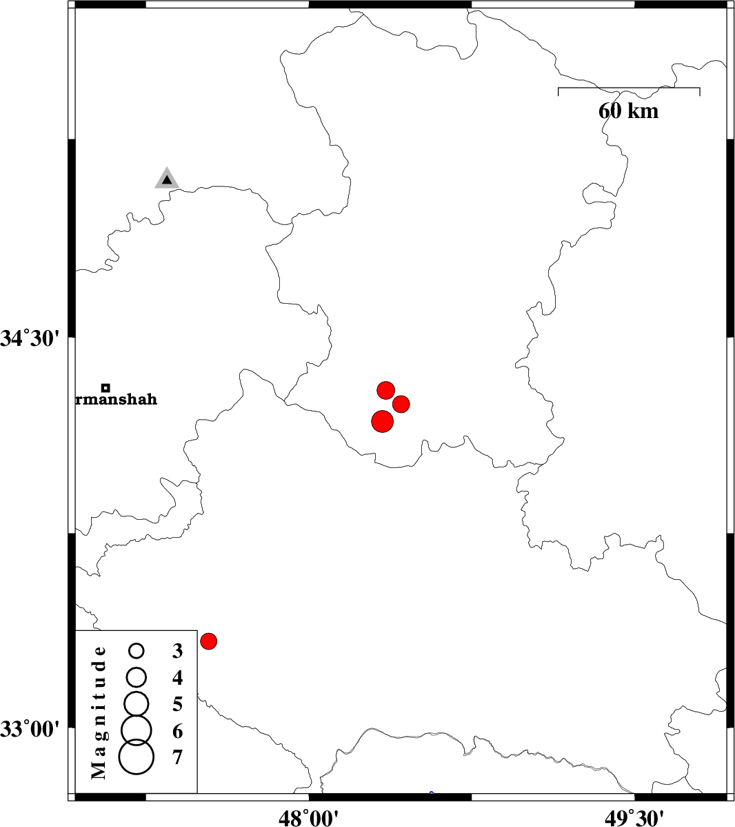 | 2025/10/20 | 06:15:14.1 | 09:45:14.1 | 33.334 | 47.539 | 12 | ML3.4 | Lorestan Province, 23 km South of Kuhdasht |