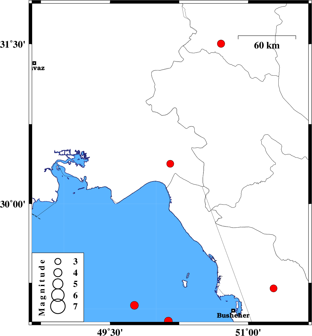 | 2025/11/10 | 12:22:09.6 | 15:52:09.6 | 28.884 | 50.133 | 12 | ML3.9 | Persian Gulf, 69 km South-West of Busheher | ||