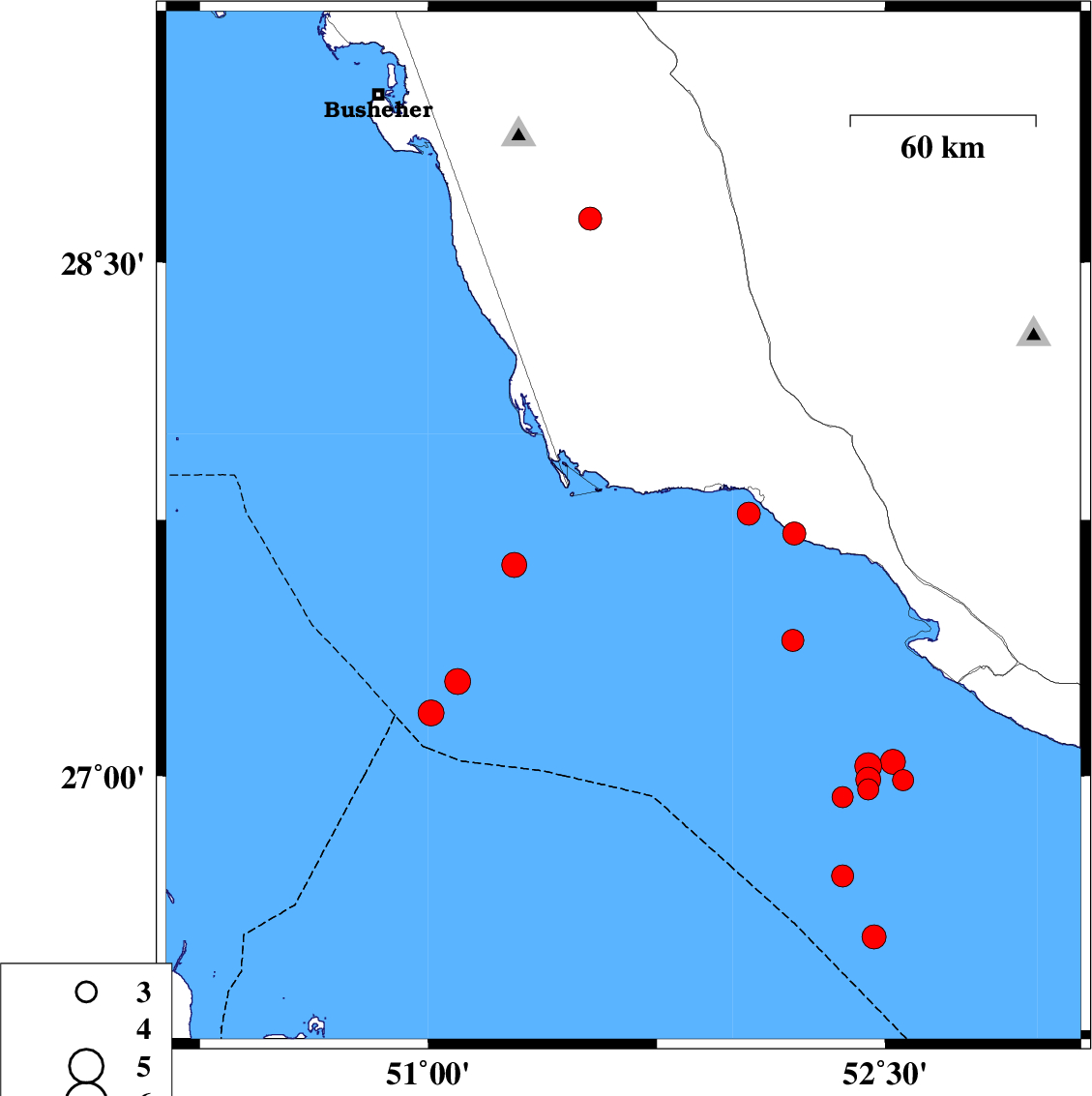 Persian Gulf, 43 km South-West of Bandar-e kangan | |