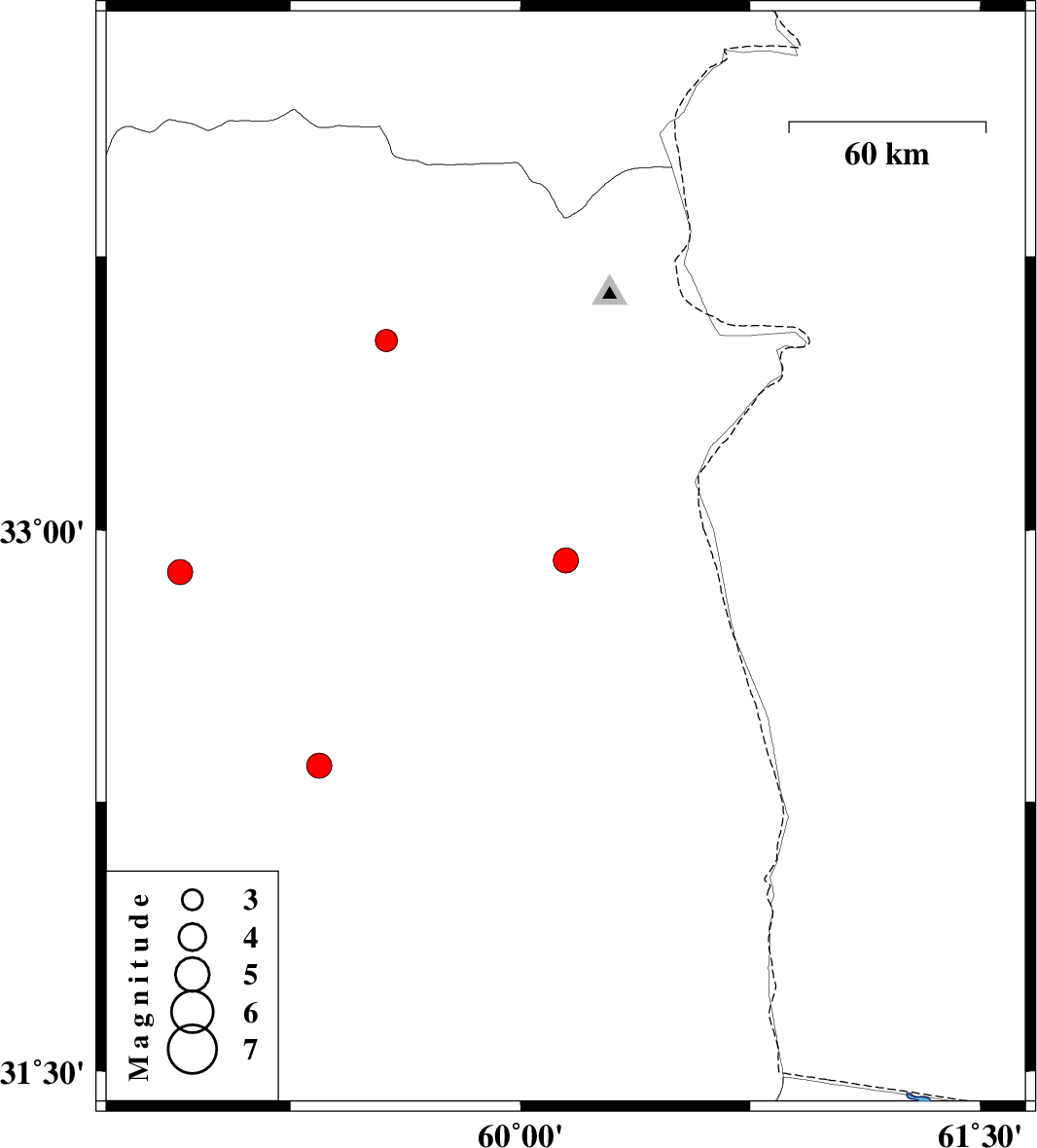| 2024/11/18 | 07:51:00.2 | 11:21:00.2 | 32.885 | 58.89 | 5 | ML3.6 | Khorasan(south) Province, 32 km -West of Birjand |
