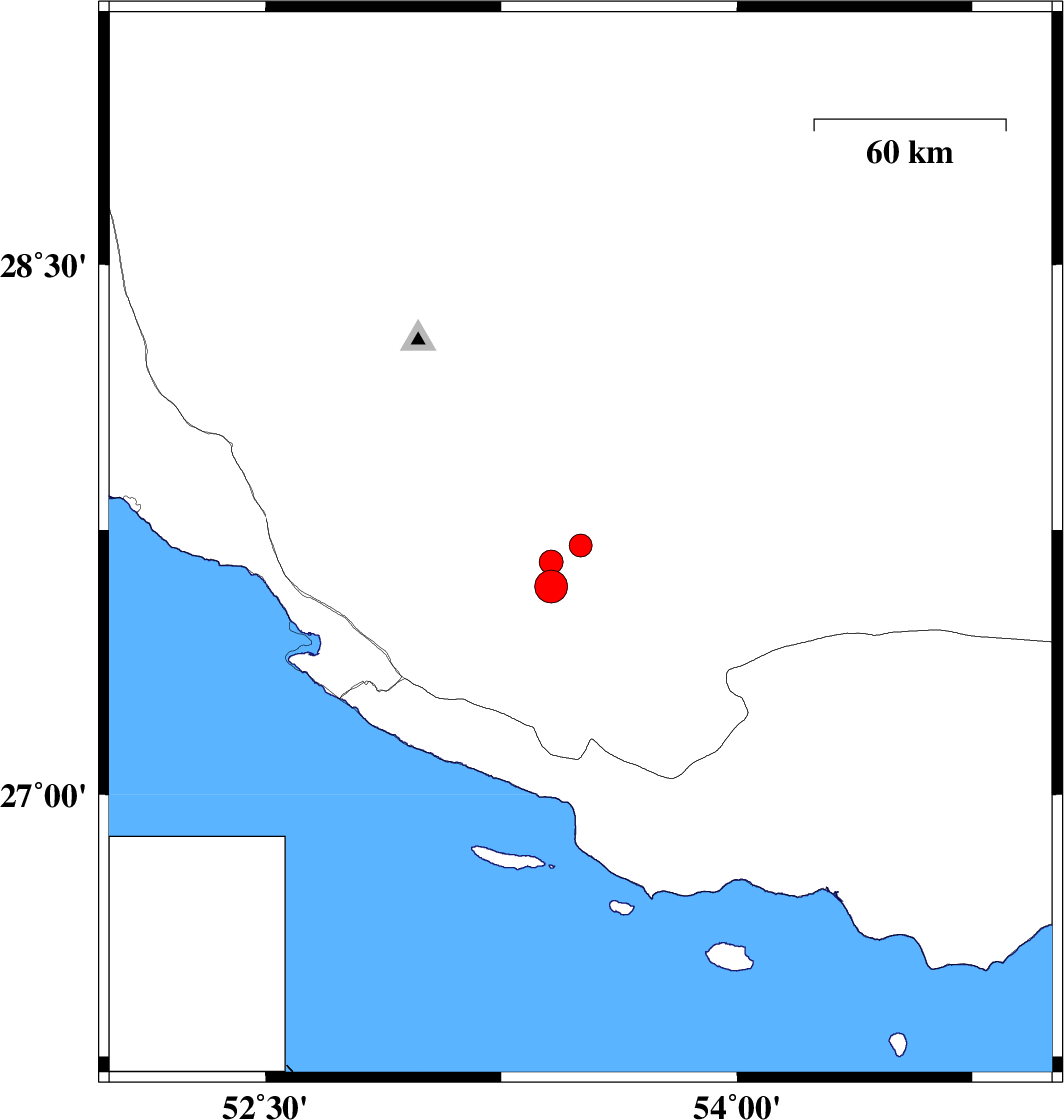 | 2020/07/13 | 02:02:35.0 | 06:32:35.0 | 27.707 | 53.503 | 8 | ML3.2 | Fars Province, 53 km North-East of Lamerd | ||